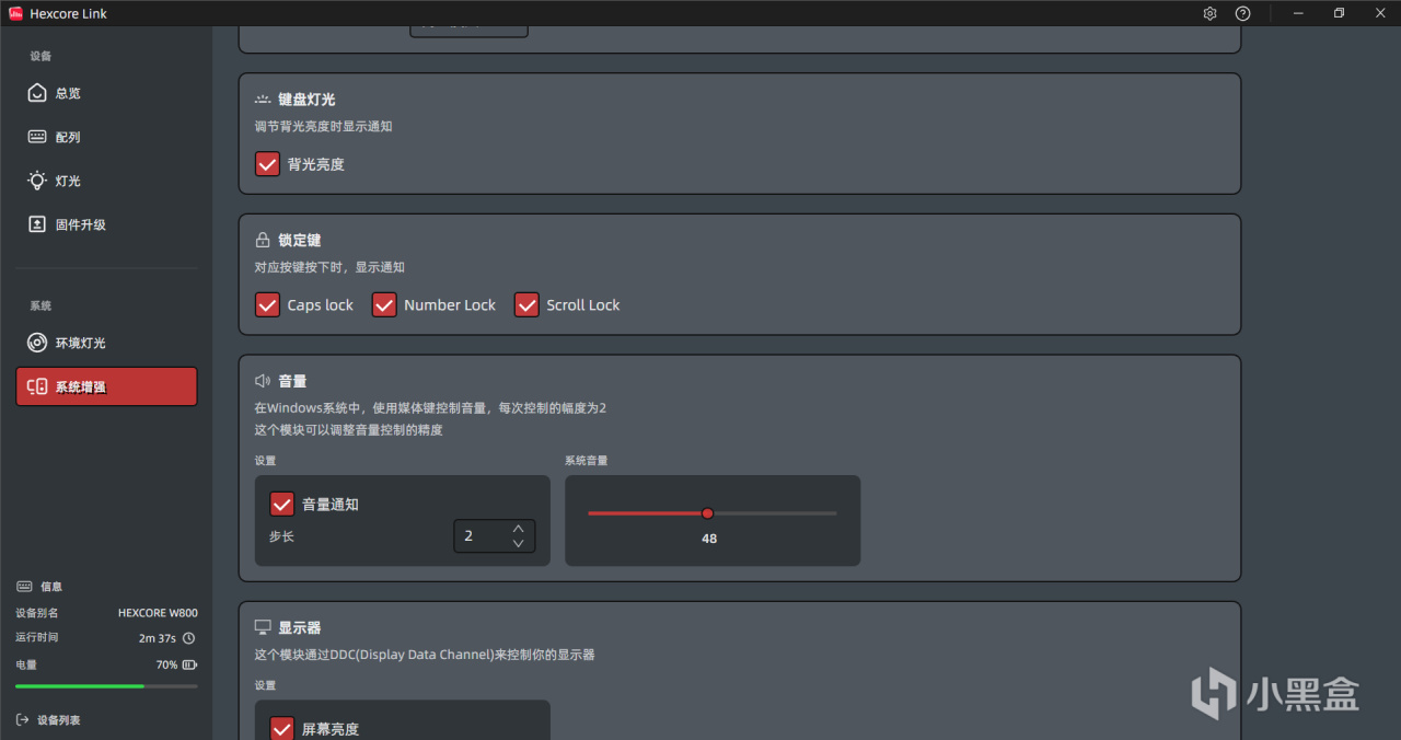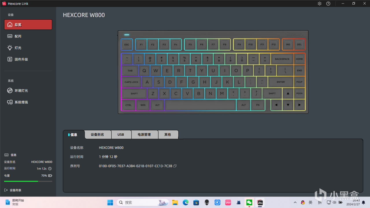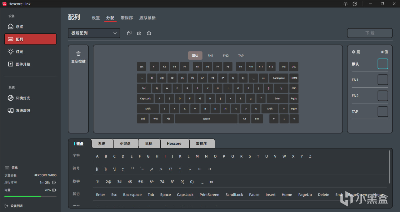 W800支持自家的电脑驱动Hexcorelink,并支持板载配列,可以在驱动软件中进行全键自定义设置、RPG灯光的自定义设置、固件升级等功能,UI界面设计的简洁明了,功能也非常全面,实在让人忍不住感叹:原来驱动可以做成这个样子!