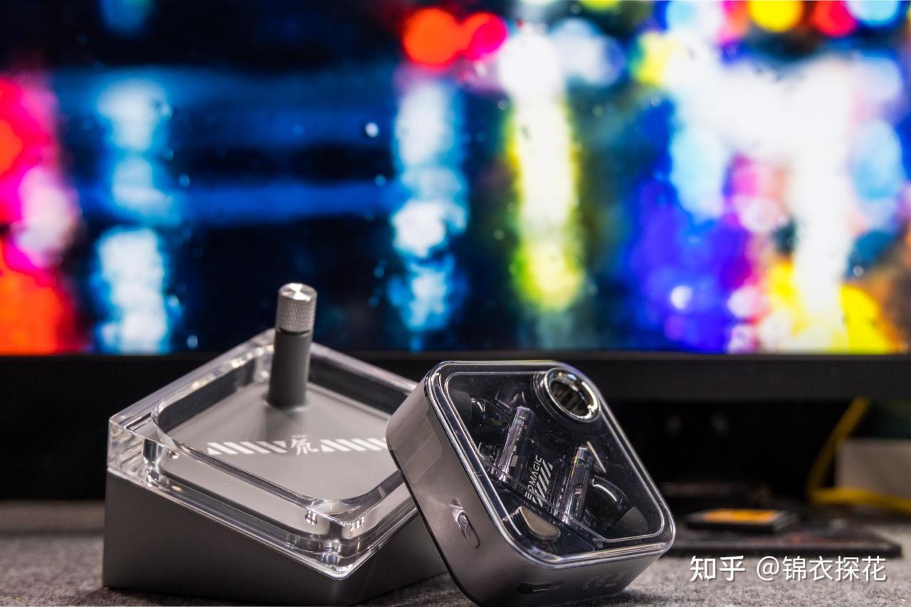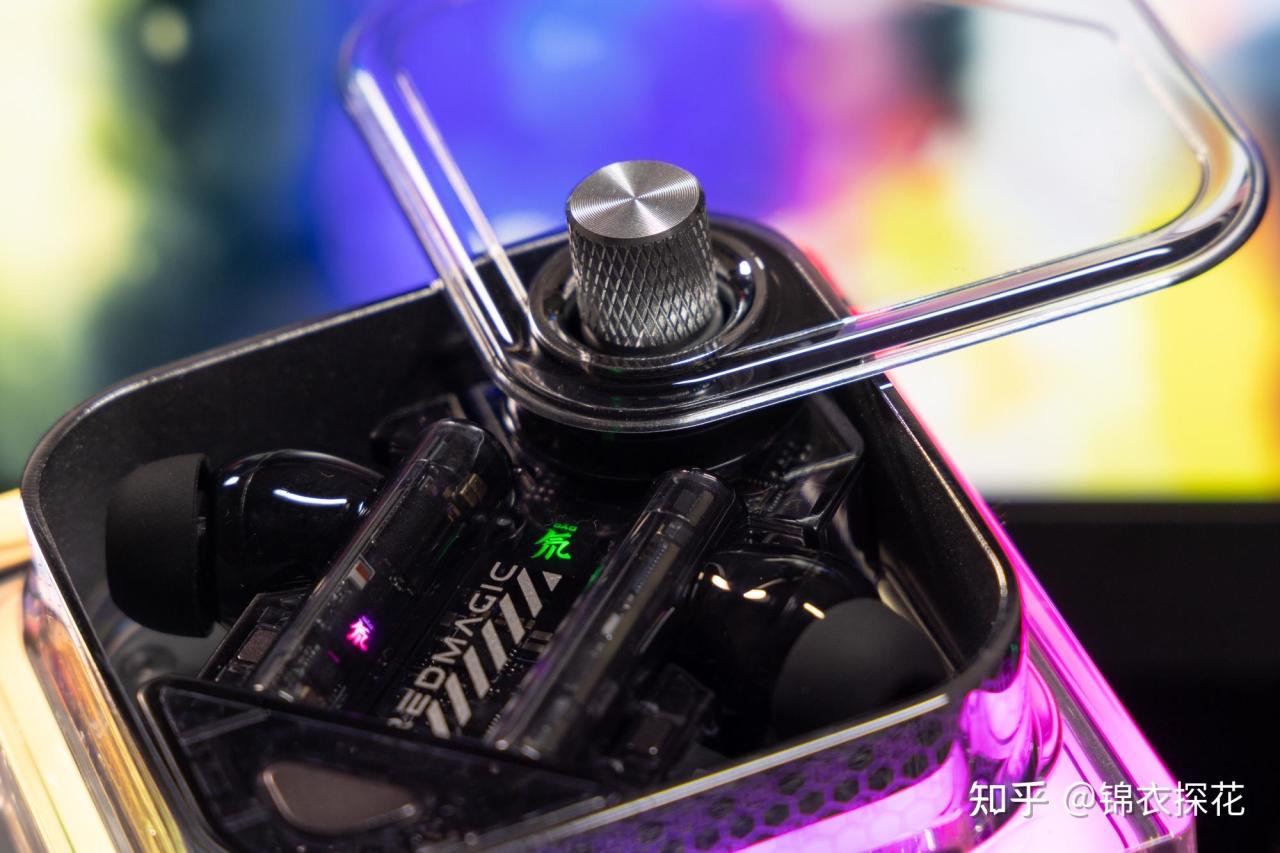 氘锋DAO TWS耳机完全体是以充电仓+多功能底座的合体形态呈现,两者都采用了透明材质、银色金属的组合设计,在视觉外观、材料组成上都达到了彼此呼应,整体的观感颇为科幻,有种未来的科技感。多功能底座在充电仓放入后除了可以打造氛围灯光,还支持无线充电。