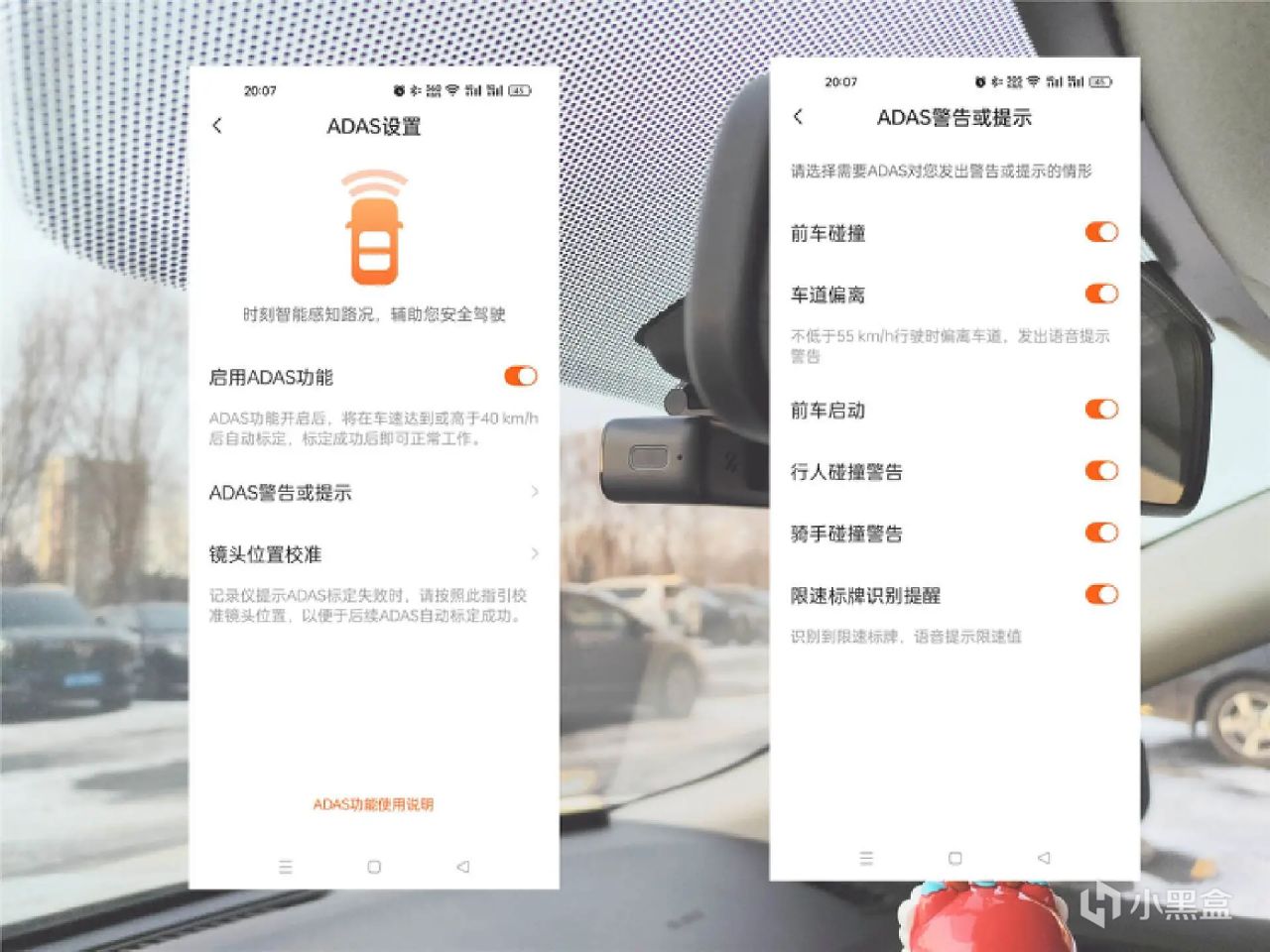 安装成功后,通过70迈APP进行连接,查看画面位置,146°的超大广角拍摄范围最大能覆盖6行车道。只要将摄像头对准前面正中心,就能对前方大部分画面进行录制,甚至要比司机看到的范围更大、更清晰。