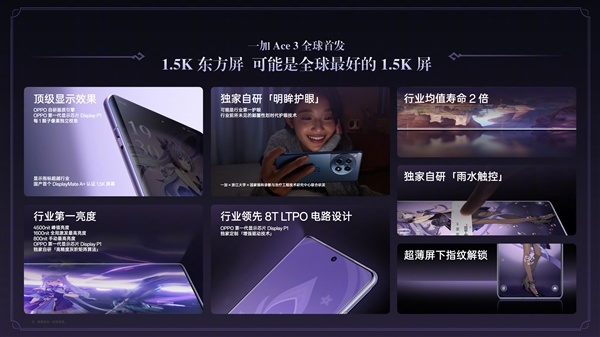核心配置上,一加Ace 3原神刻晴定制机采用1.5K东方屏,搭载高通骁龙8 Gen2移动平台,电池是5500毫安时,支持100W有线闪充。