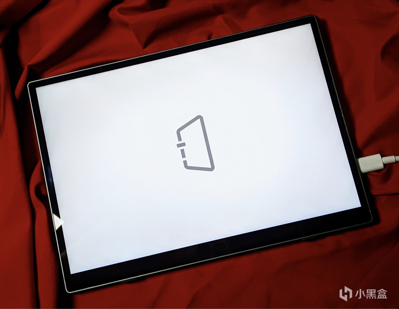 那點亮屏幕可以看到,這塊便攜屏的黑邊部分控制的比較到位同時作爲一塊IPS面板,其本身的漏光表現並不算特別嚴重(四個角的暗角部分就是漏光),雖然鏡頭下可能會有所顯示,但在實際使用時其實幾乎感受不到,如果不信可以拿手機拍一下自己的電腦顯示器,可能會比這個還嚴重哦~