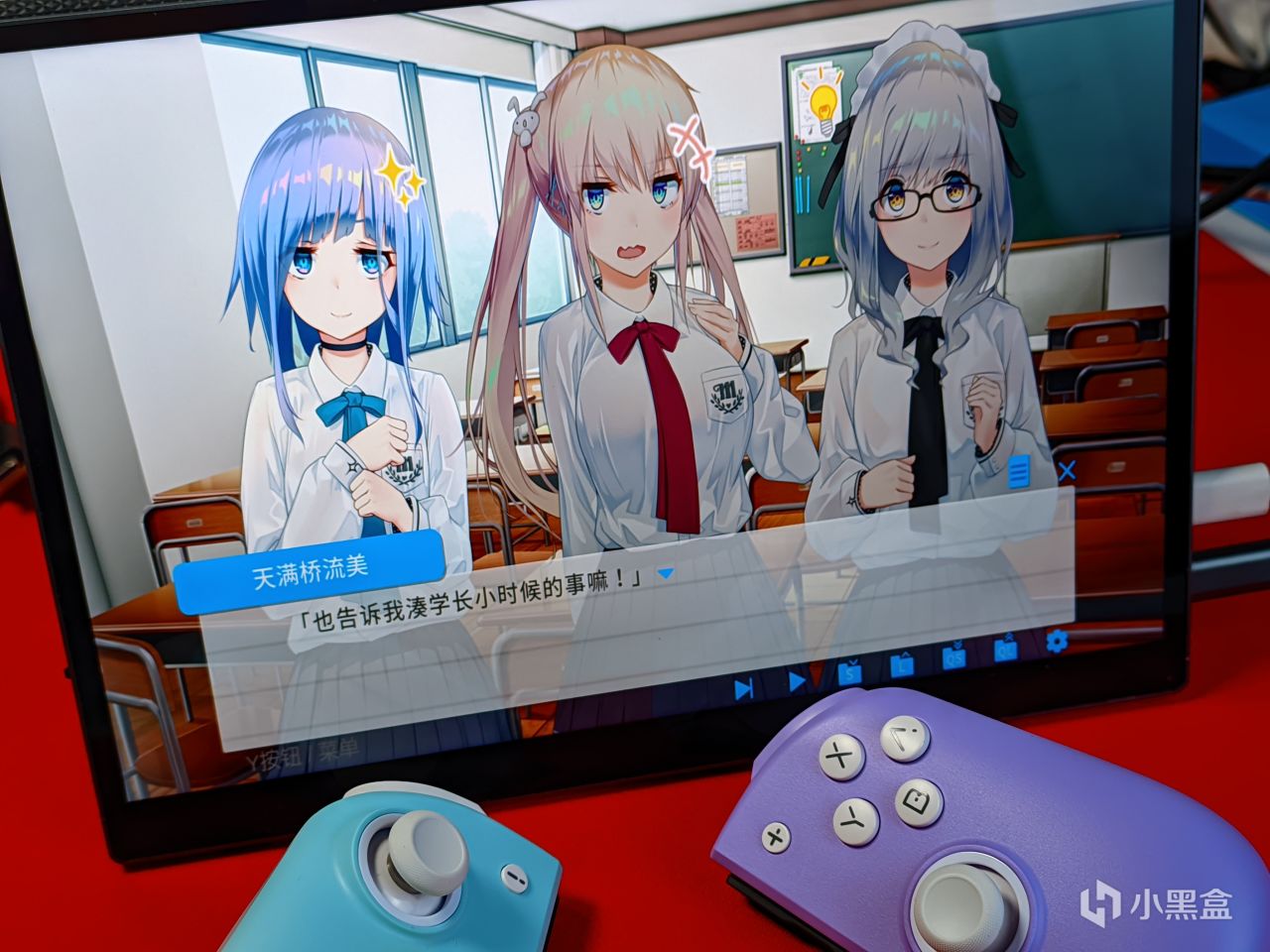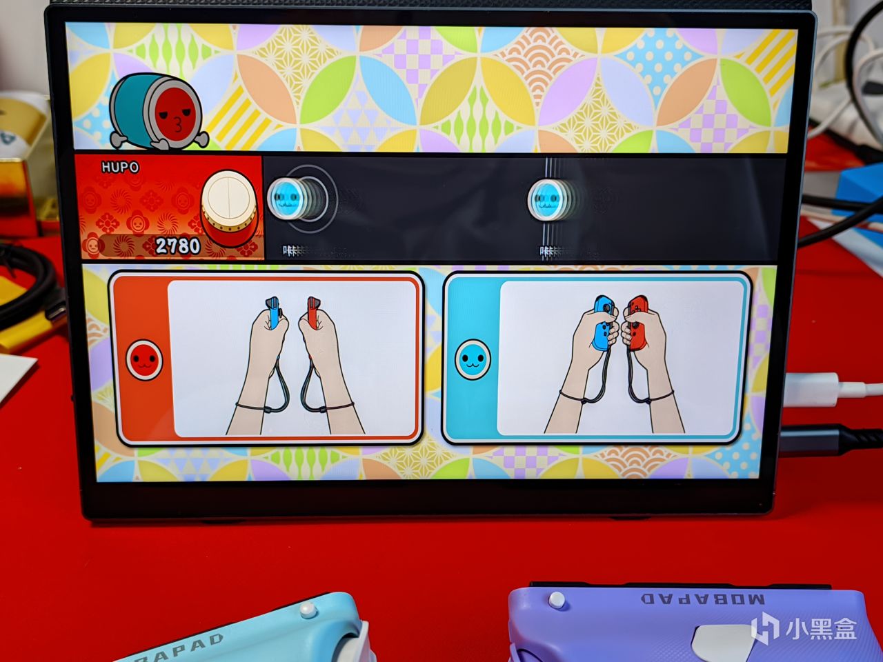 其配合上套裝中的皮套,可以呈一個角度立在桌面之上,也是我買了NS那麼久,第一次可以在太鼓達人裏面選擇桌上模式,真的是可喜可賀了,而我的NS是續航版,其本身的屏幕是一塊低色域的LCD屏幕,而在更換便攜屏後,其本身的色彩簡直要好太多了,真的是太感動了,我推gal都更有動力了!(bushi)