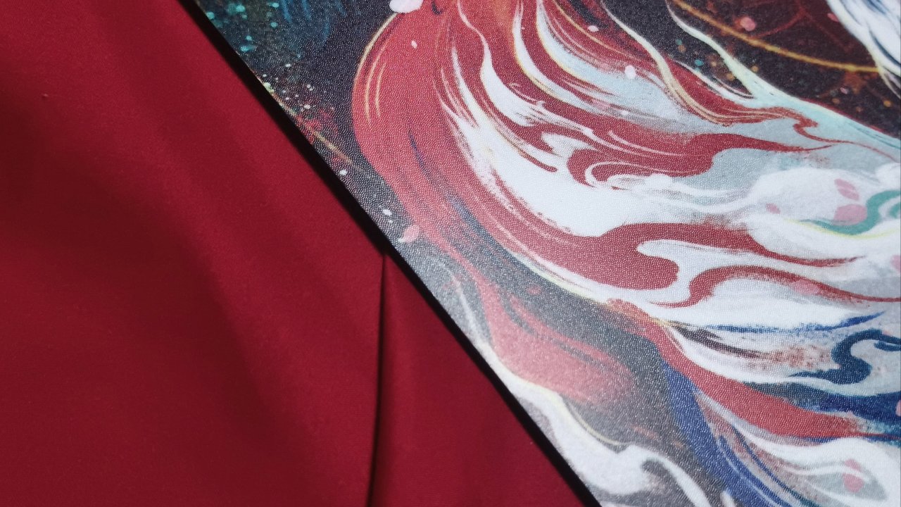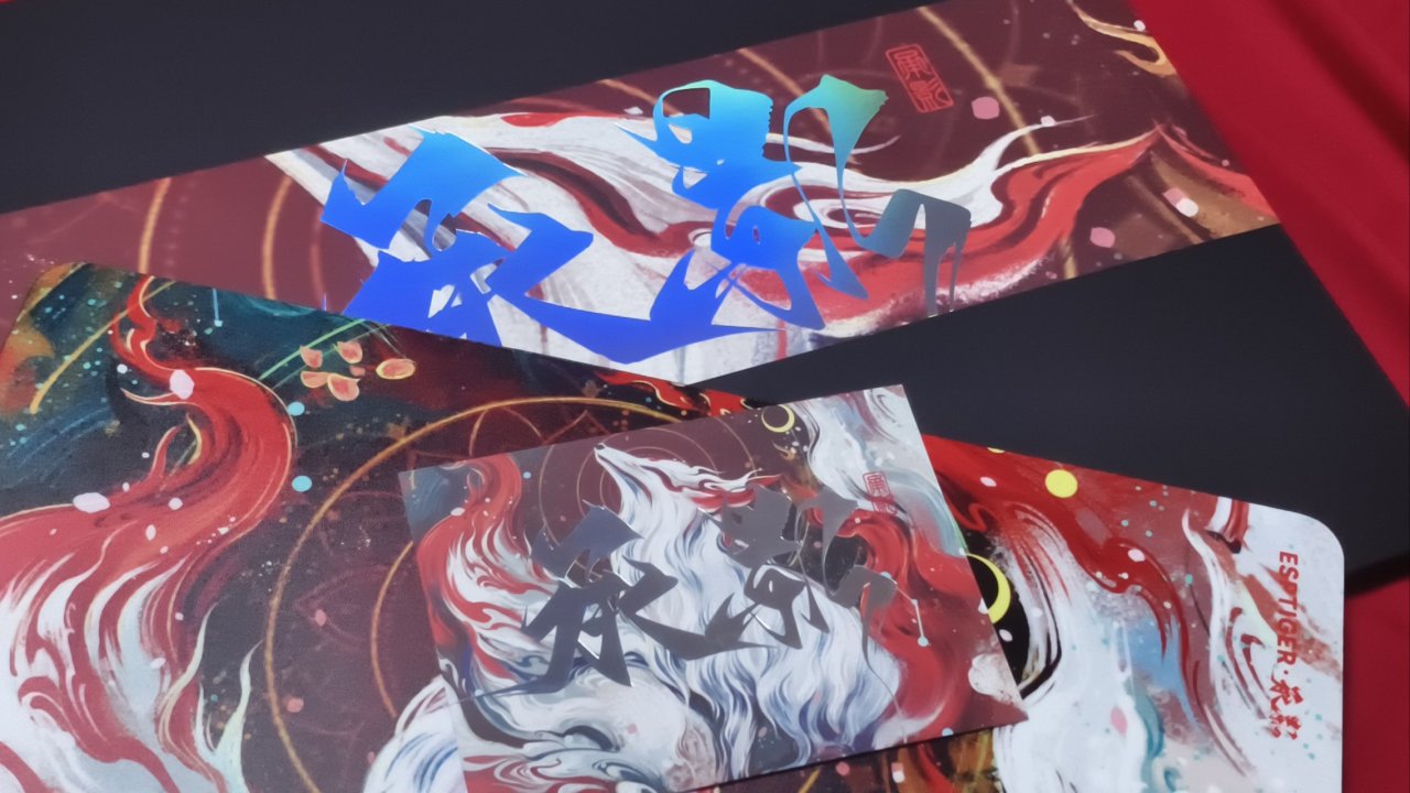 鼠标垫的图案可以看到它是以狐狸为主题,看到这里大家应该都发现了,不管是之前的青髓X青髓玄也好,还是这回的承影。虎符特别喜欢中国的神话为一个背景来制作,那种国风拉满,设计方面也很精美,当然一张好的鼠标垫你也不能观看它的图案嘛,下面就来看看它表面的面料