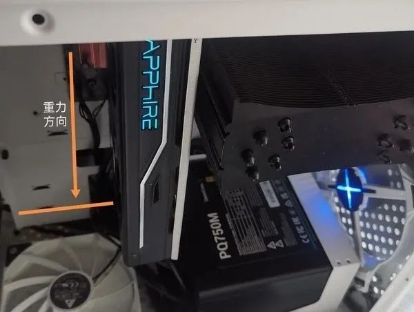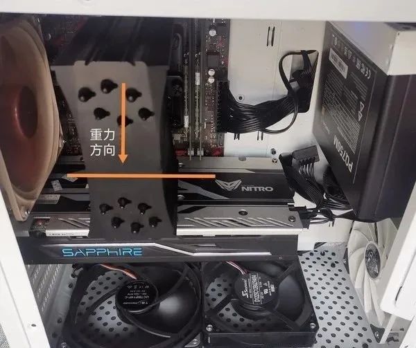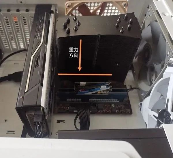 随后将机箱竖立,此时更接近通常使用的情况。重力方向如图所示。