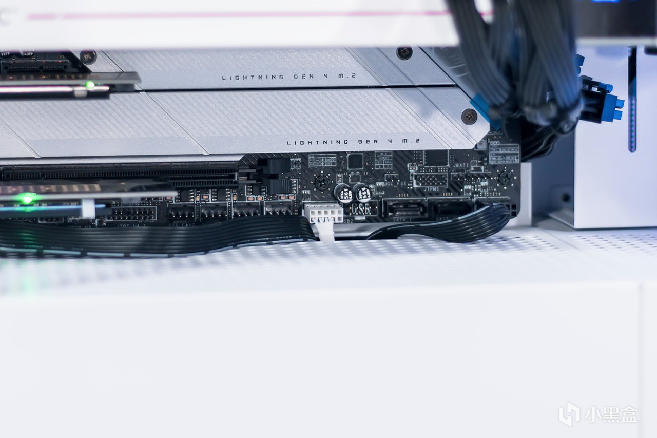 本次將水冷散熱器安裝在Intel的LGA1700平臺上,整個安裝過程十分便捷輕鬆,裝完仍需連接傳統的風扇供電線、ARGB燈效線以及USB傳輸線,比如這款微星MPG Z790 EDGE Ti MAX WIFI主板,四針的CPU風扇與水冷頭專用供電接口,以及兩個5V三針的ARGB接口均位於主板的左上角,在裝機時更易於連接。