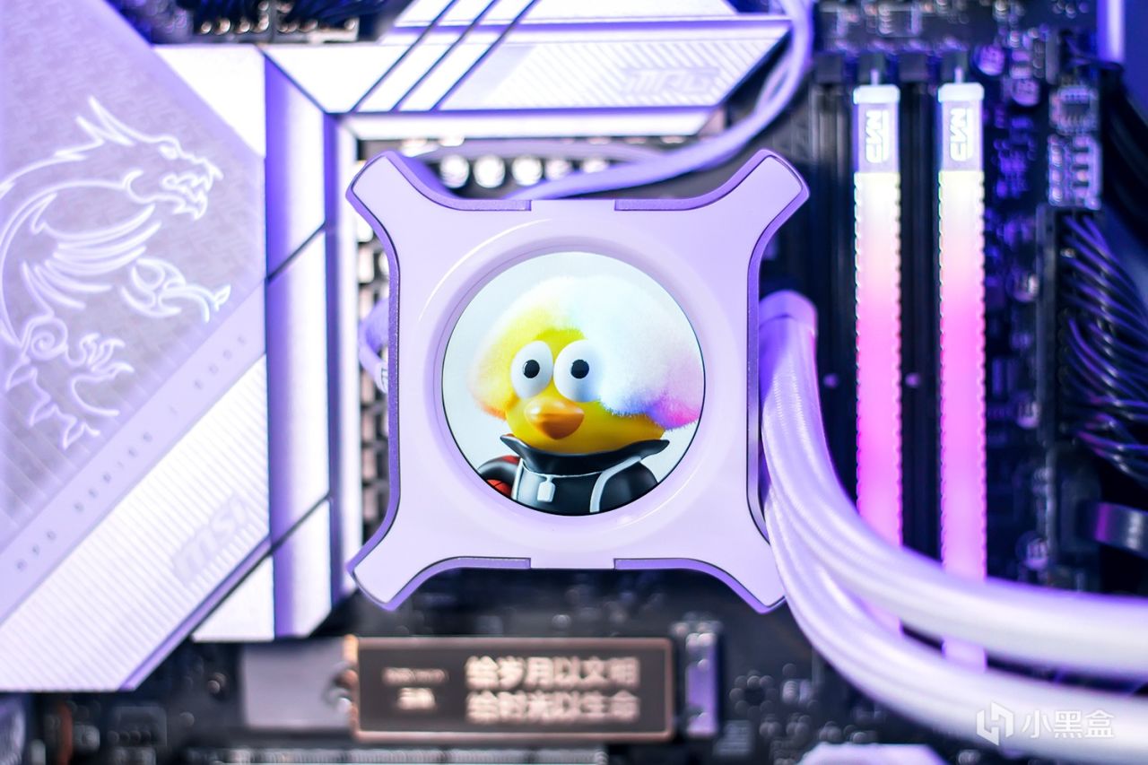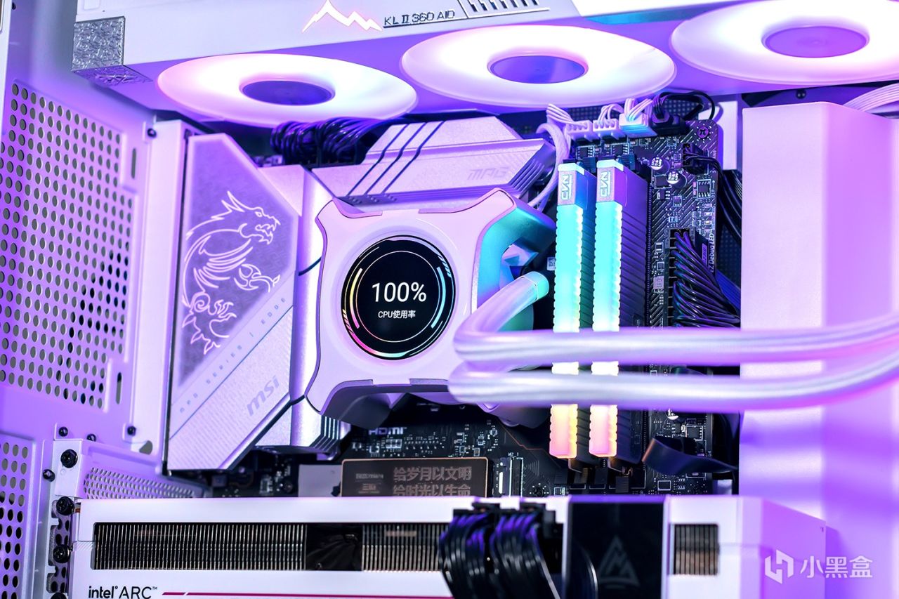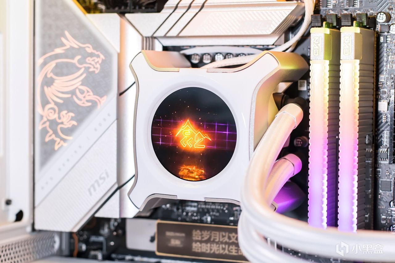在最爲關鍵的散熱效果方面有着卓越表現,其標稱散熱功耗可達320W,經過實測能穩穩壓住i7-14700K處理器烤機滿載發熱,不受制於散熱盡情釋放性能,甚至還有餘力去應對小幅度超頻,能支撐起326W功耗的長時間考驗,可滿足旗艦級處理器的散熱需求,在運行噪音控制方面表現也很好,輕度負載時幾乎聽不到散熱風扇噪音,當全速運行時噪音基本仍處在可接受範圍內,水冷頭還內置了散熱風扇,可爲主板供電模組提供主動散熱,降低溫度提升供電穩定性。