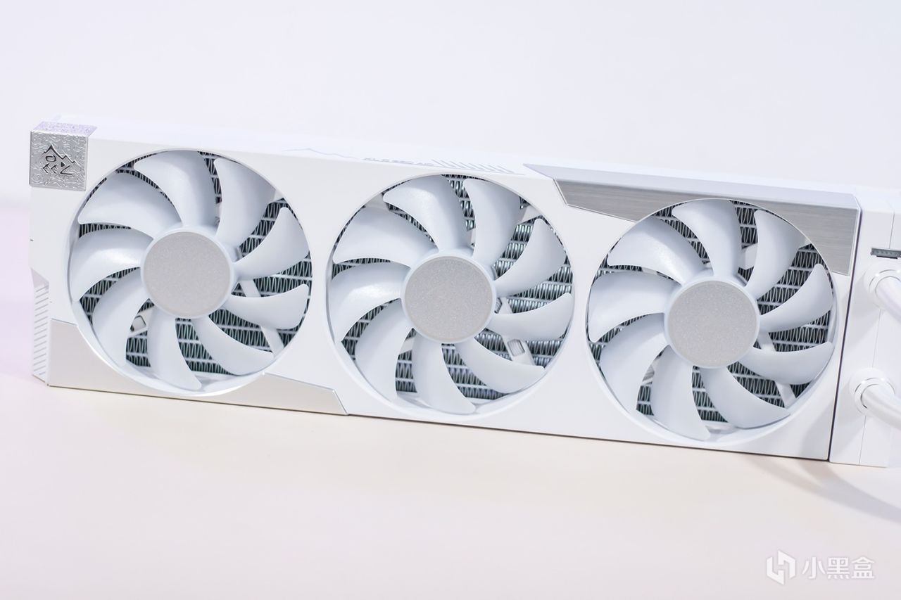 鑫谷崑崙二代360水冷散熱器目前提供了兩種配色版本可選,分別是黑色與冰山白,由於本次組建主機的風格是白色海景房,因此特地選了冰山白色,水冷散熱器配備三個12mm散熱風扇,較爲特別的是,其採用3in1免鎖風扇設計,三個散熱風扇爲一體式不可拆卸。