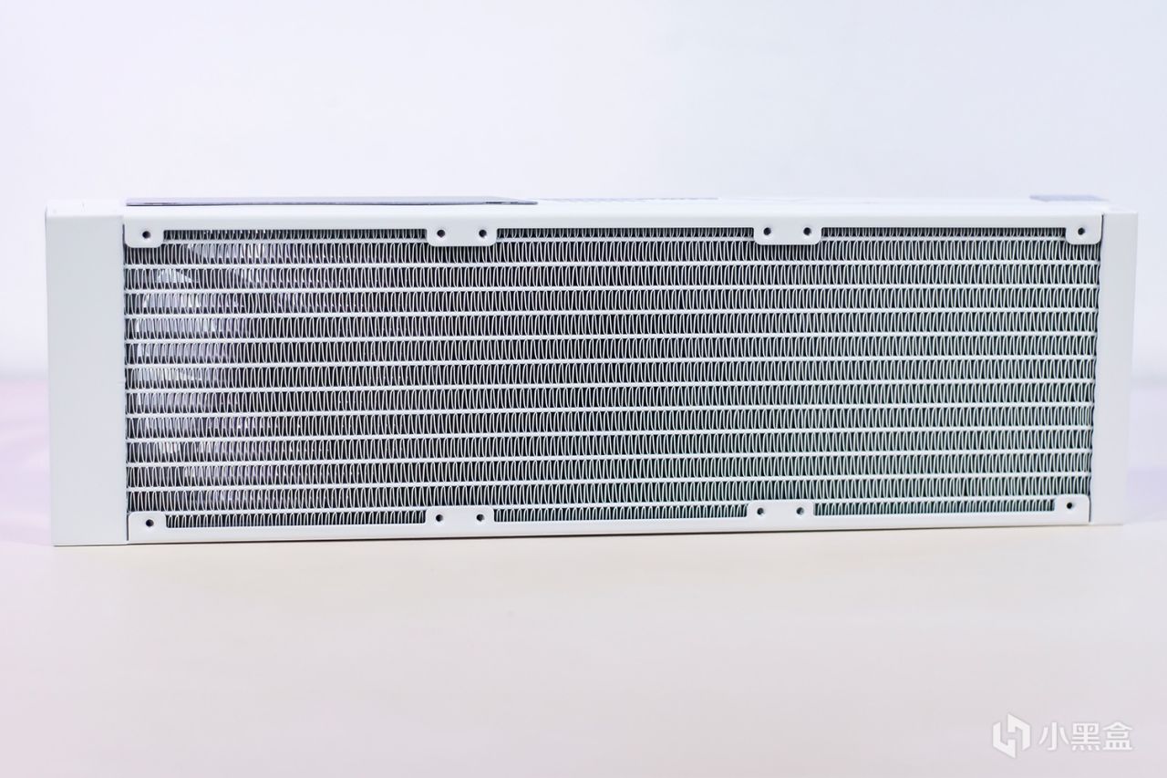 冷排部分採用的是全鋁合金材質,尺寸規格爲402x120x27mm,採用23mm加厚鰭片,水冷散熱器採用隱藏式水泵設計,將水泵設計在冷排的靠冷管側之內,而不是設計在水冷頭之中,水泵最高轉速可達6000±10%RPM,水泵噪音≤32 dB(A),標稱使用壽命爲40000小時。
