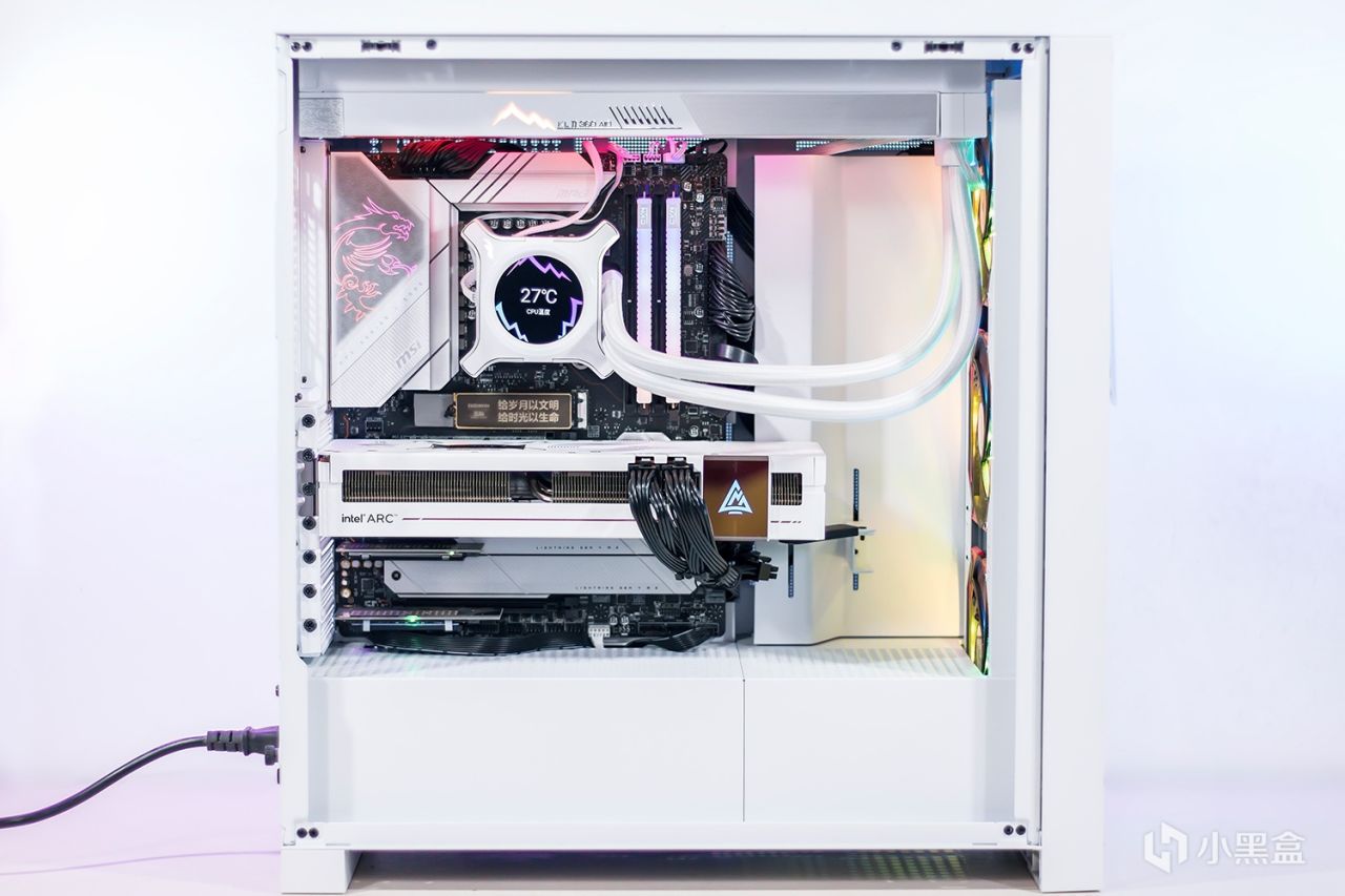 接下來對鑫谷崑崙二代360水冷散熱器進行實際裝機與性能測試,本次測試硬件配置,英特爾十四代酷睿i7-14700K處理器,微星MPG Z790 EDGE Ti MAX WIFI主板,七彩虹的DDR5 6600MHz 16GB*2內存條,藍戟的Arc A750亞運聯名版顯卡,致態的TiPro7000三體聯名版固態硬盤。