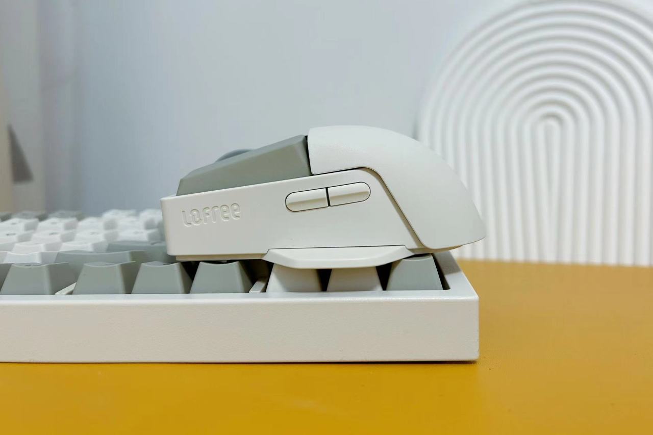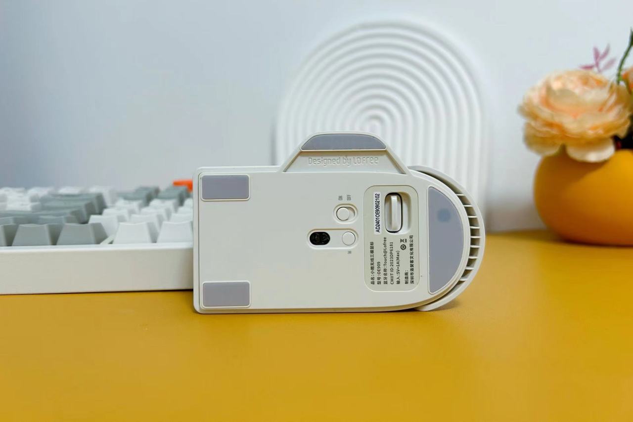 另外,这次入手的还有洛斐小翘三模鼠标,外观与键盘色系相同,整体整体造型还比较独特,左右键的与键盘按键相同的设计,按键感受轻脆,使用时没有漂移感。中间为灰色的硅胶材质滚轮,橘色的DPI键与键盘相呼应,与键盘一样设计有状态显示屏。