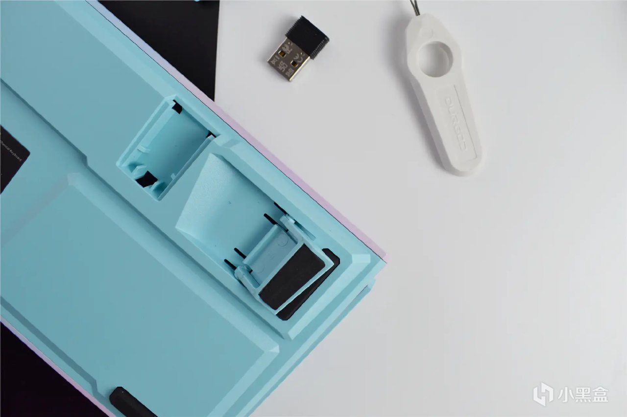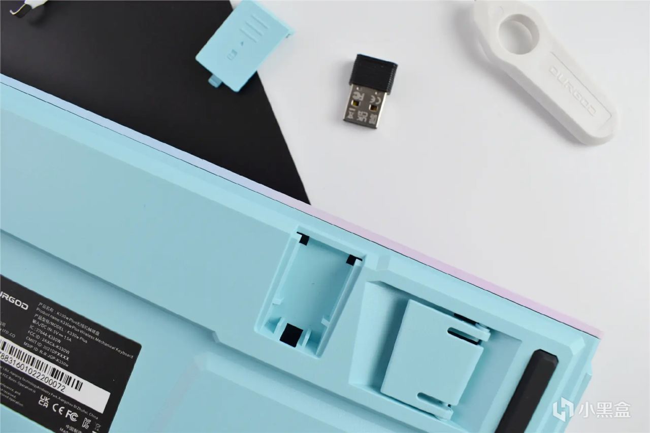 K330W PLUS在细节上也是特别用心,机身背面自带2.4G接收器收纳仓,用来妥善保存接收器,无需担心接收器乱扔甚至丢失了。