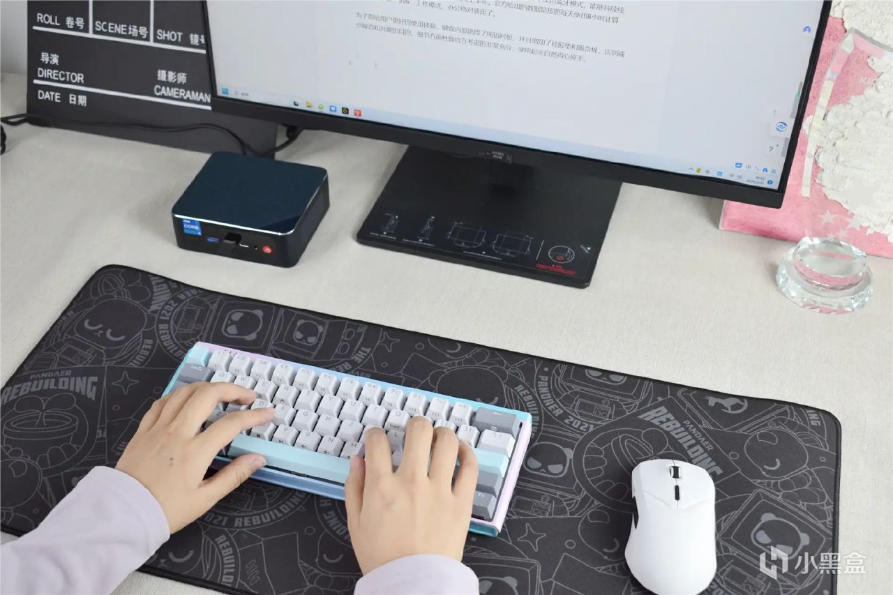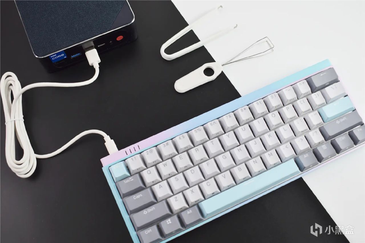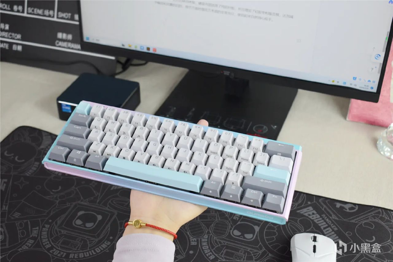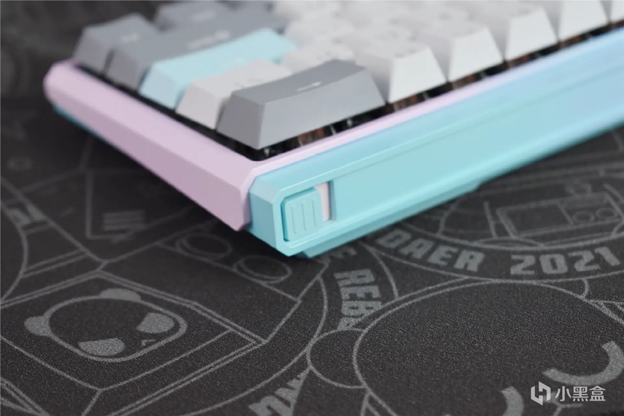 61键的紧凑布局,使得键盘体积只有常规104键的60%,可以节约40%的空间。并且重量也只有596g,就算是女生也能单手拿起,不会感觉笨重。冰淇淋、薄荷糖、离子风暴这三种撞色方案,更符合年轻用户的审美,不仅好用更好看。