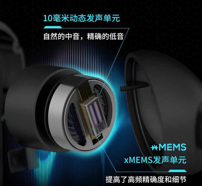 驱动单元:MEMS固态单元+10mm动圈