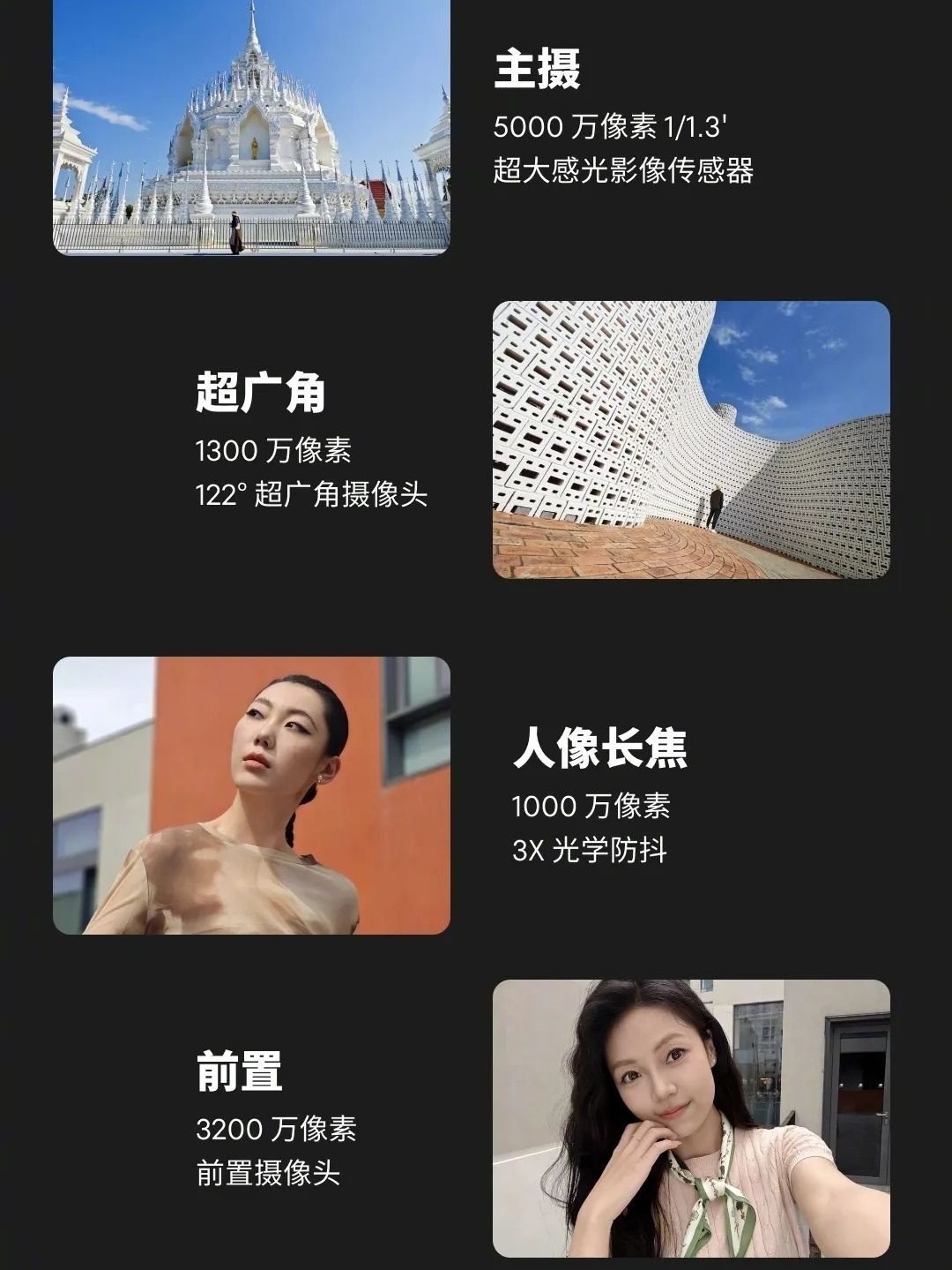 魅族21 Pro配备一颗3200万像素前置摄像头,后置5000万像素OV50H主摄+1300万像素超广角+1000万像素长焦的三摄组合。