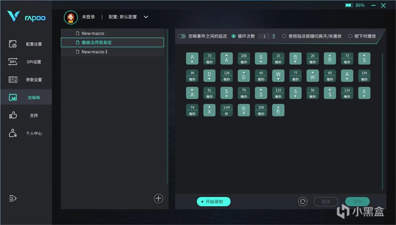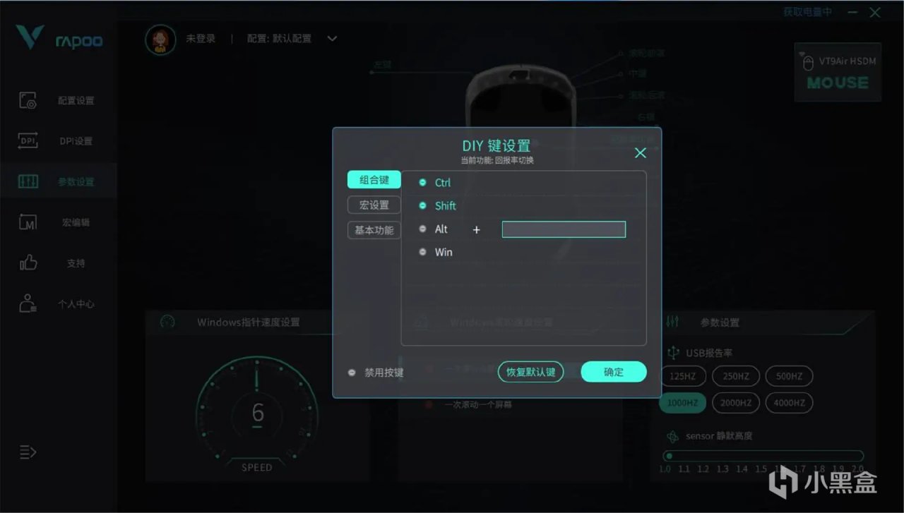 和雷柏键盘一样,通过驱动程序能够赋予鼠标更多功能,解锁更多用法。包括DPI设置、宏定义、更改按键等功能都可以在配套驱动程序中完成调试。并且鼠标支持板载存储与云存储,在家或者在办公室,都能自由调取个人习惯设置,省去了每次使用进行调试的麻烦。