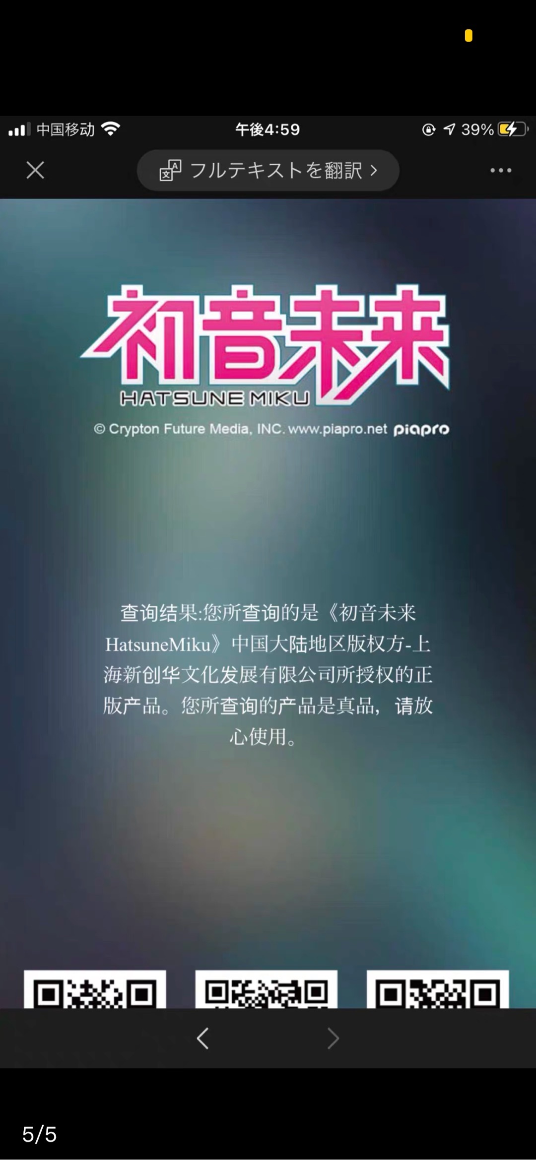 如果吊牌是上圖這樣,沒有藍色的miku防僞碼的,可以確認是國產fufu。