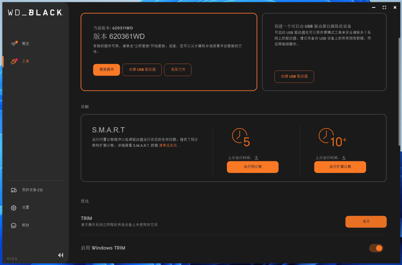 此外,我們還能通過DashBoard給SN850X更新固件,手動TRIM,以及檢查SMART信息等等,用到的時候還是挺方便的。