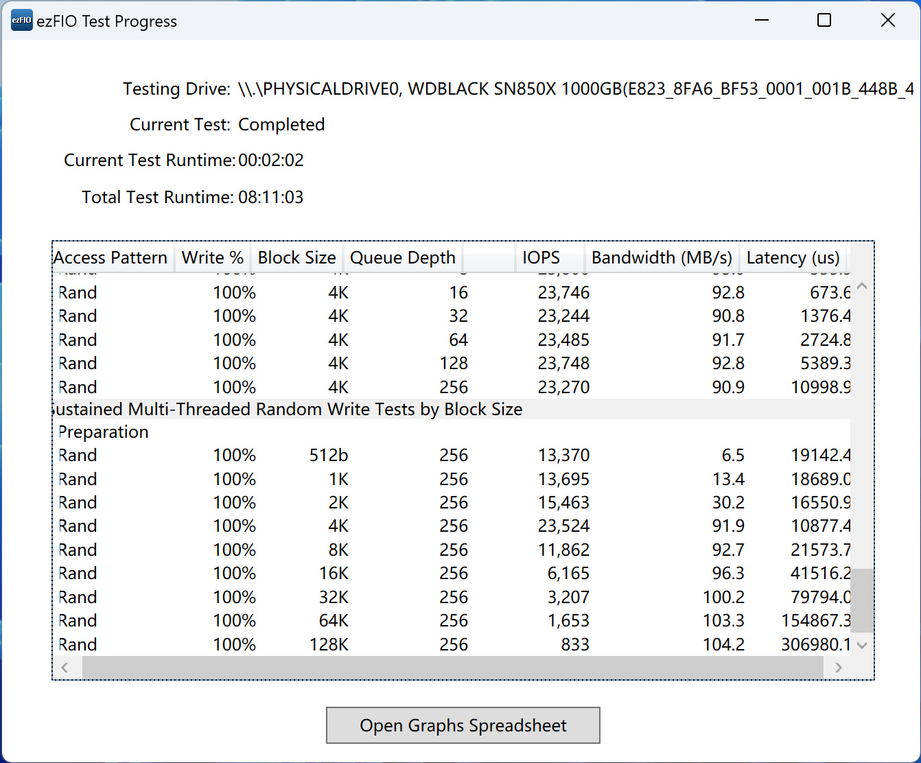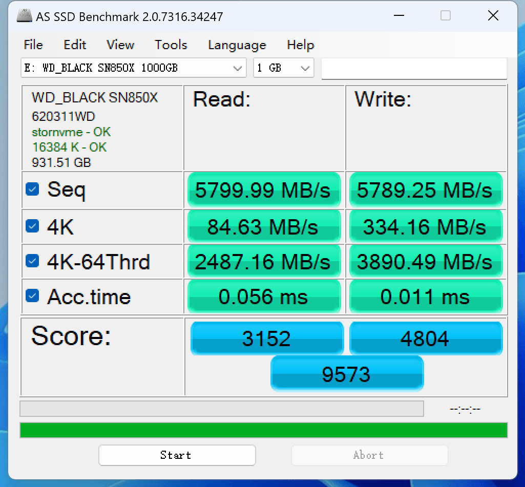 空盤狀態下,SN850X 1TB的測試結果如下: