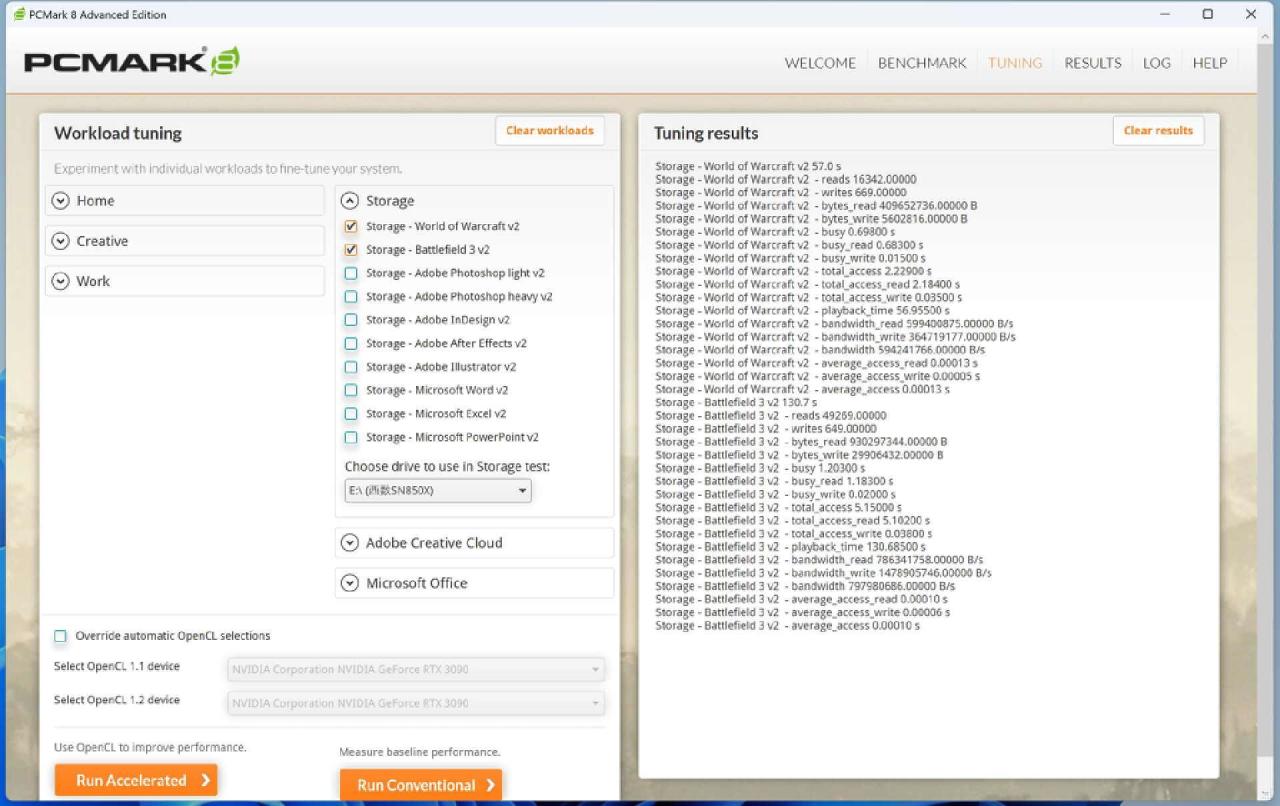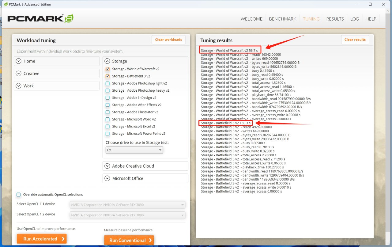 所以這裏我們選擇使用PCMark10中的完整系統盤基準測試,通過回放操作腳本的方式來觀察SSD的性能表現。