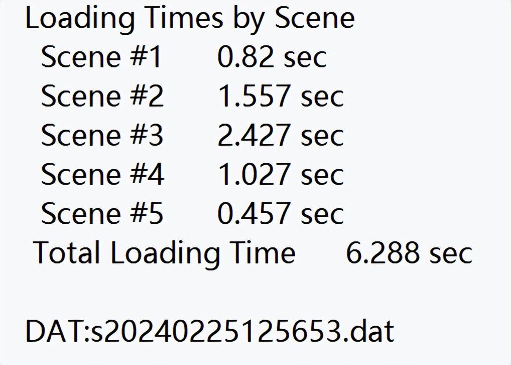 實際測試結果如下圖所示,最長的一個場景也只不過用了2秒多點兒就加載完畢,基本相當於秒加載了,非常迅速: