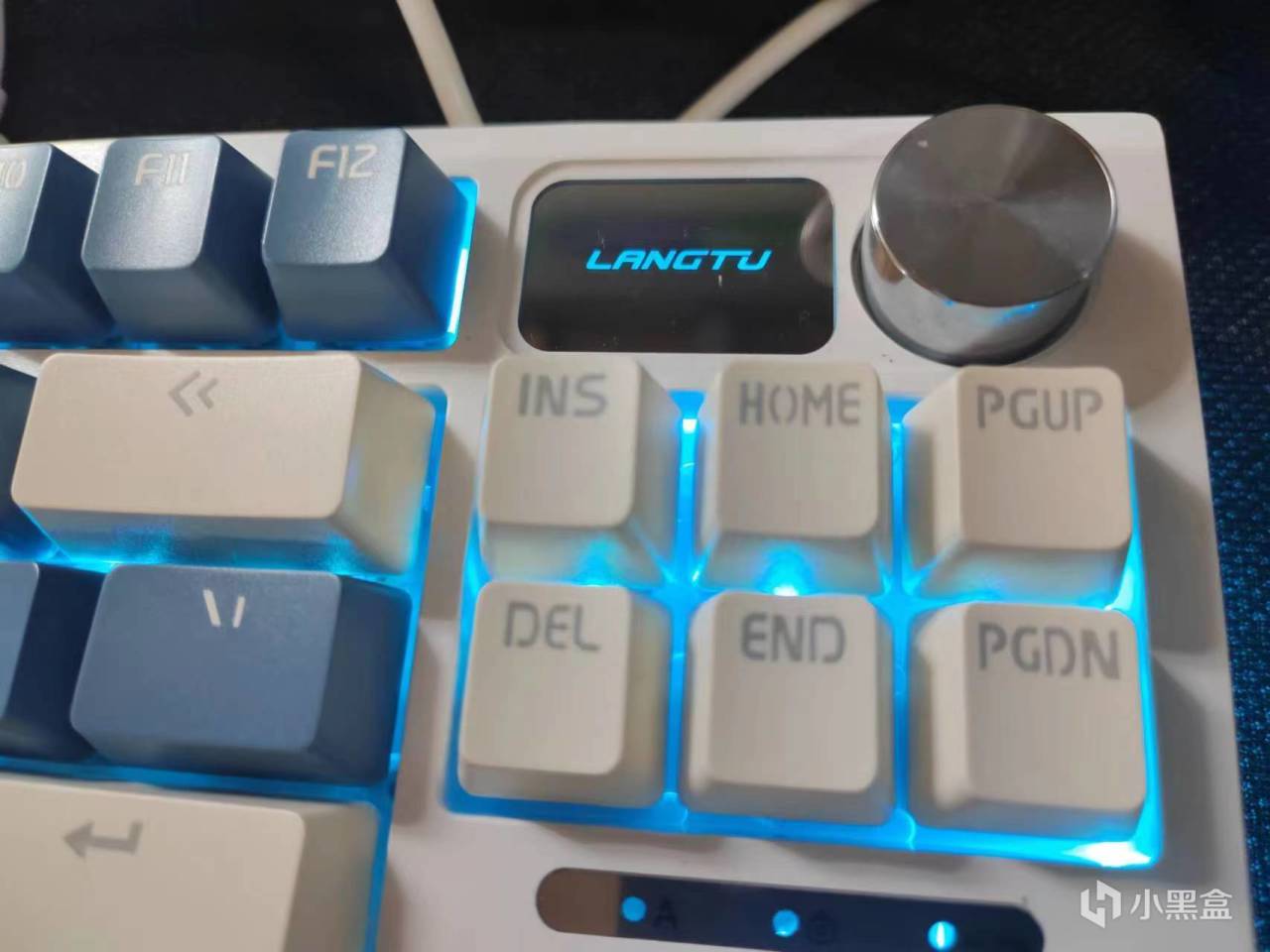 LT84共有四種配色,分別是冰藍(全鍵純白)、拂曉(主體深藍、大鍵奶白)、曙光(主體奶白、大鍵淺灰)、暮夜(主體白色、大鍵深藍),其中冰藍和拂曉爲logo屏,即右上角小屏幕只會亮起狼途的logo標誌,而曙光和幕夜則爲數字屏,可以顯示數字,同時這兩款的燈光爲燈效更豐富、顏值更高的混彩RGB,當然價格上也會貴上二十元,各位可以根據預算需求進行選購。