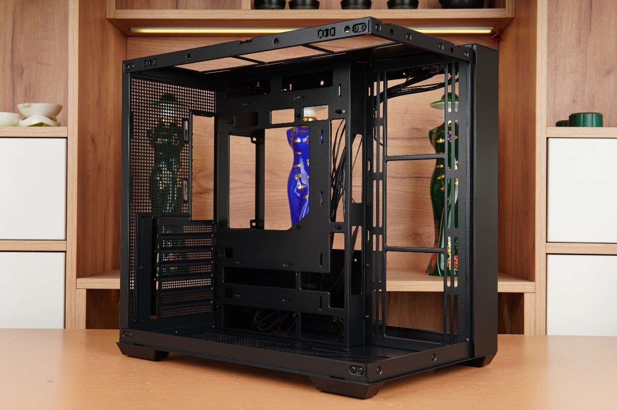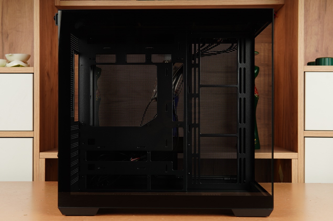 機箱的側透側可視範圍也非常大,機箱內部的空間基本一覽無餘。