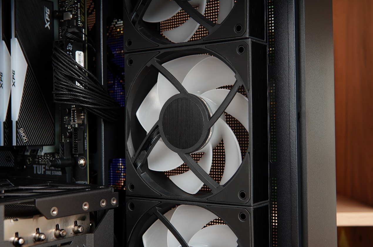 這次選擇的XT128風扇是帶有ARGB的版本,風扇的整體外形設計與機箱非常搭配,同爲方正的設計。邊框採用了PBT530材料,風扇軸承則採用了FBD軸承,能夠帶來更低的噪音表現同時還有更長的運行壽命。