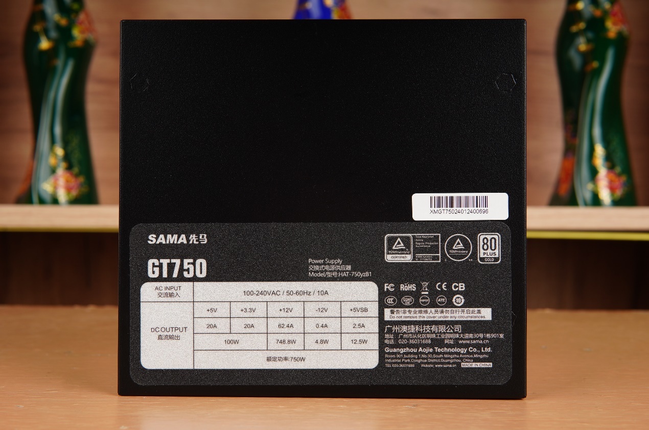 電源採用了高端電源常見的主動式PFC+全橋LLC諧振拓撲+同步整流+DC-DC方案打造,+5V與+3.3V均爲額定20A輸出,聯合輸出功率爲額定100W ;+12V爲單路設計,最大可以輸出62.4A的電流,可以最大輸出748.8W總功率,總功率上來看應付目前的高端平臺是問題不大的。