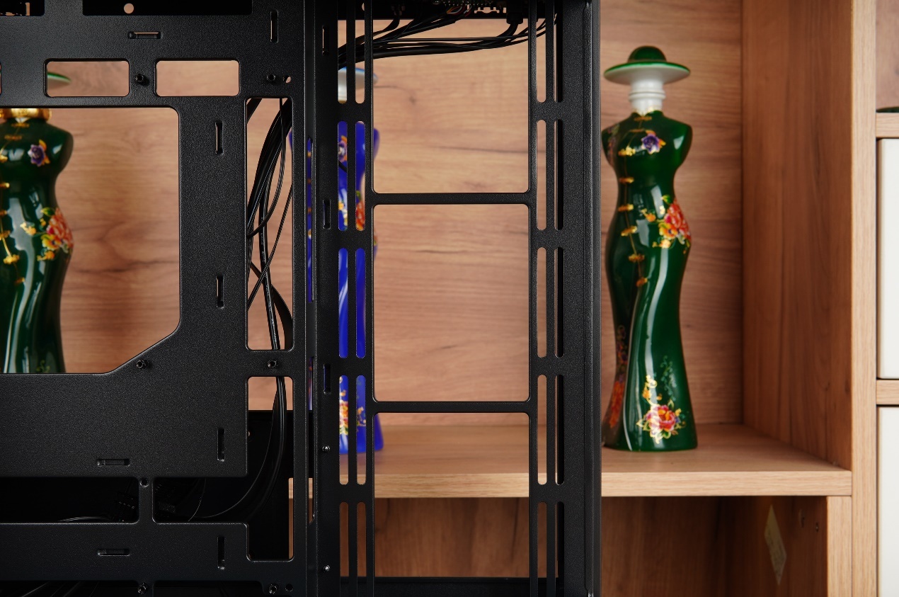 海景房機箱標誌性的側面風扇支架也同樣擁有,最大也是支持360mm冷排安裝。