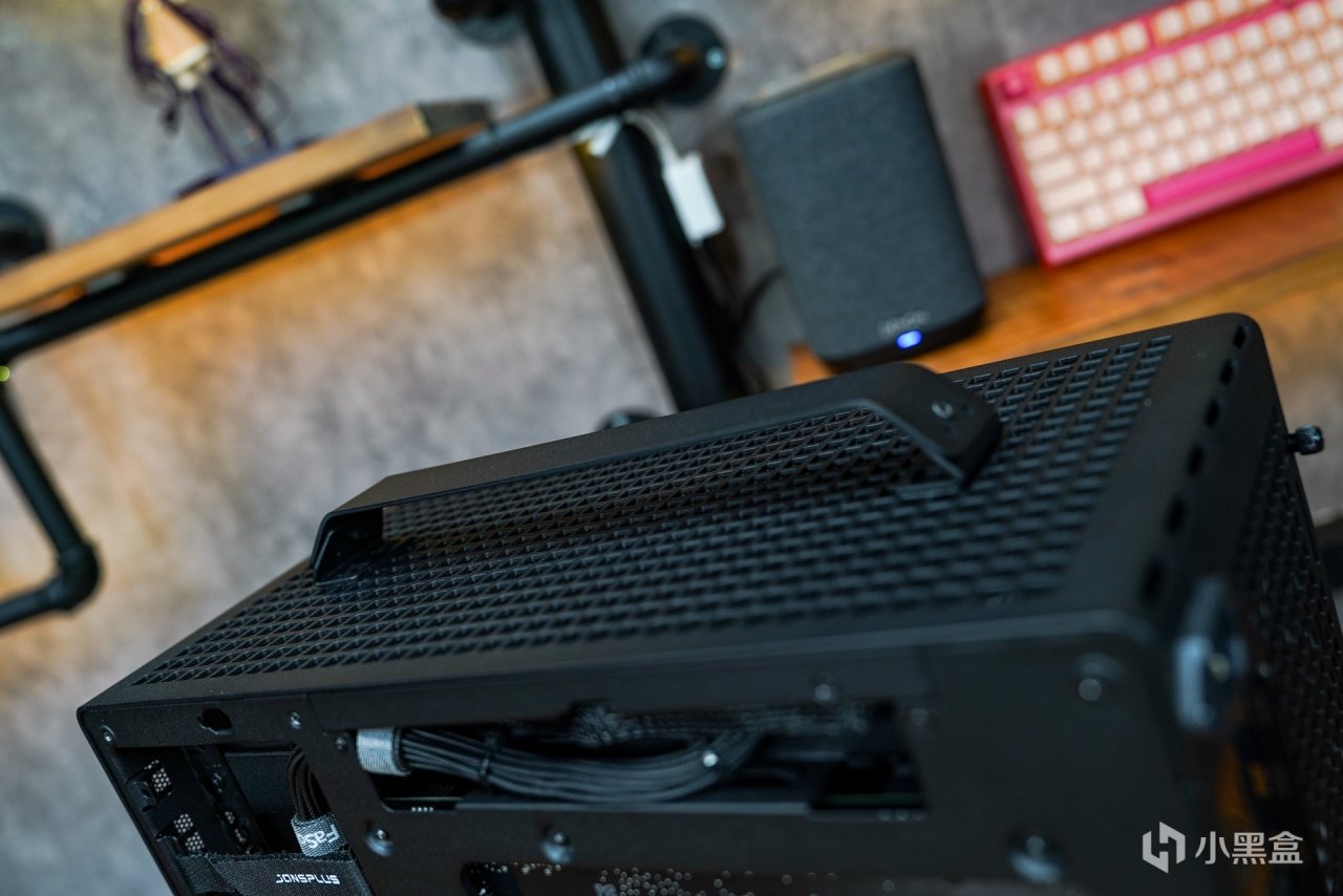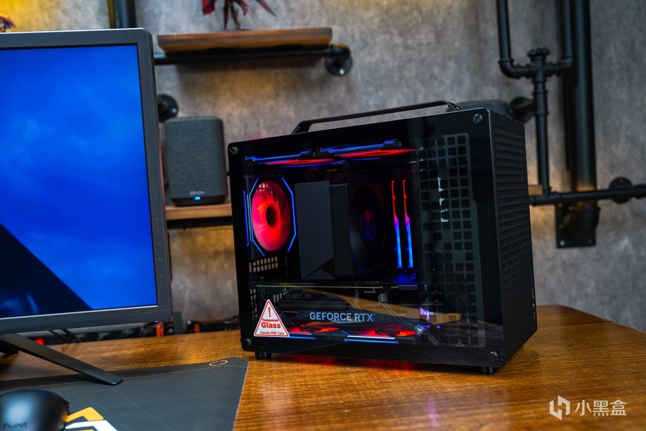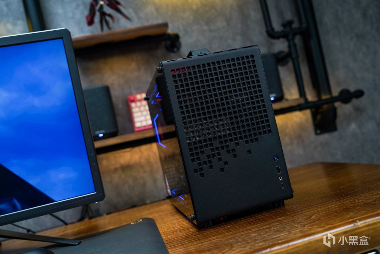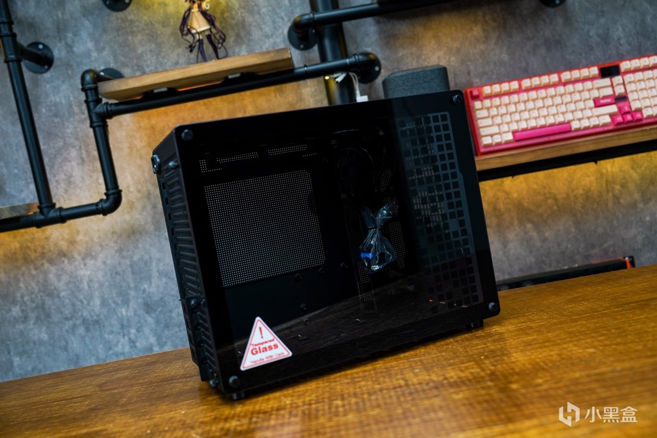 再結合硬件的安裝後的效果,可以看到作爲一款主打緊湊型的20L體積的小型化機箱,既有便於搬動的提手設計,在受衆面上M-ATX主機無疑是受衆更廣泛,也是普羅大衆玩家選擇最多的主機之一,麻雀雖小但是五臟具全。
