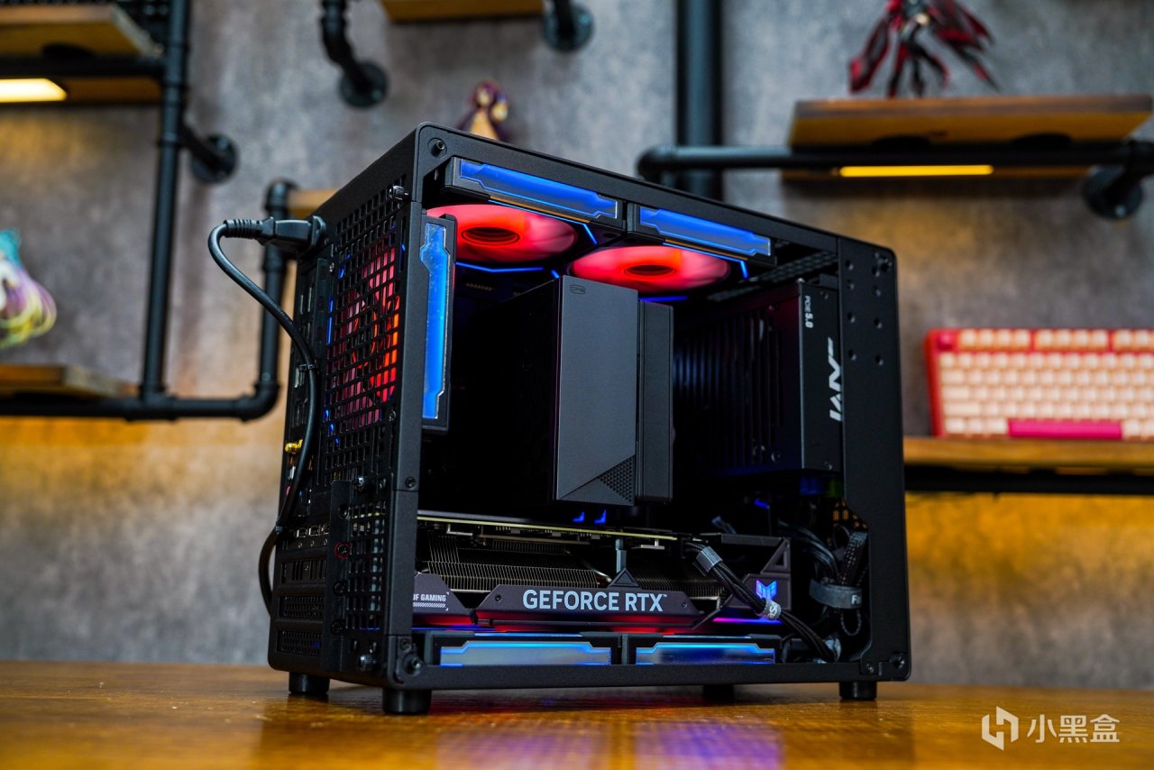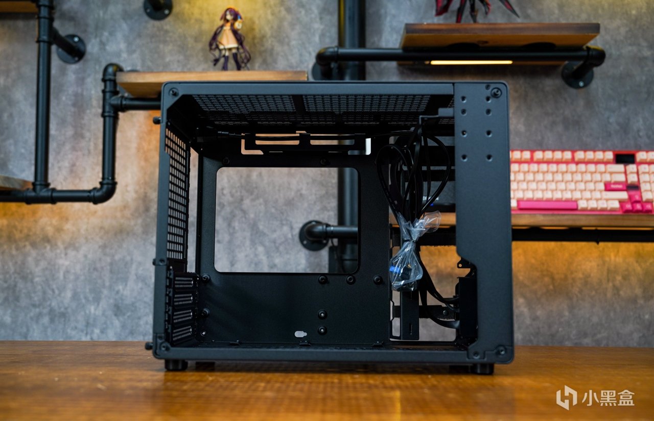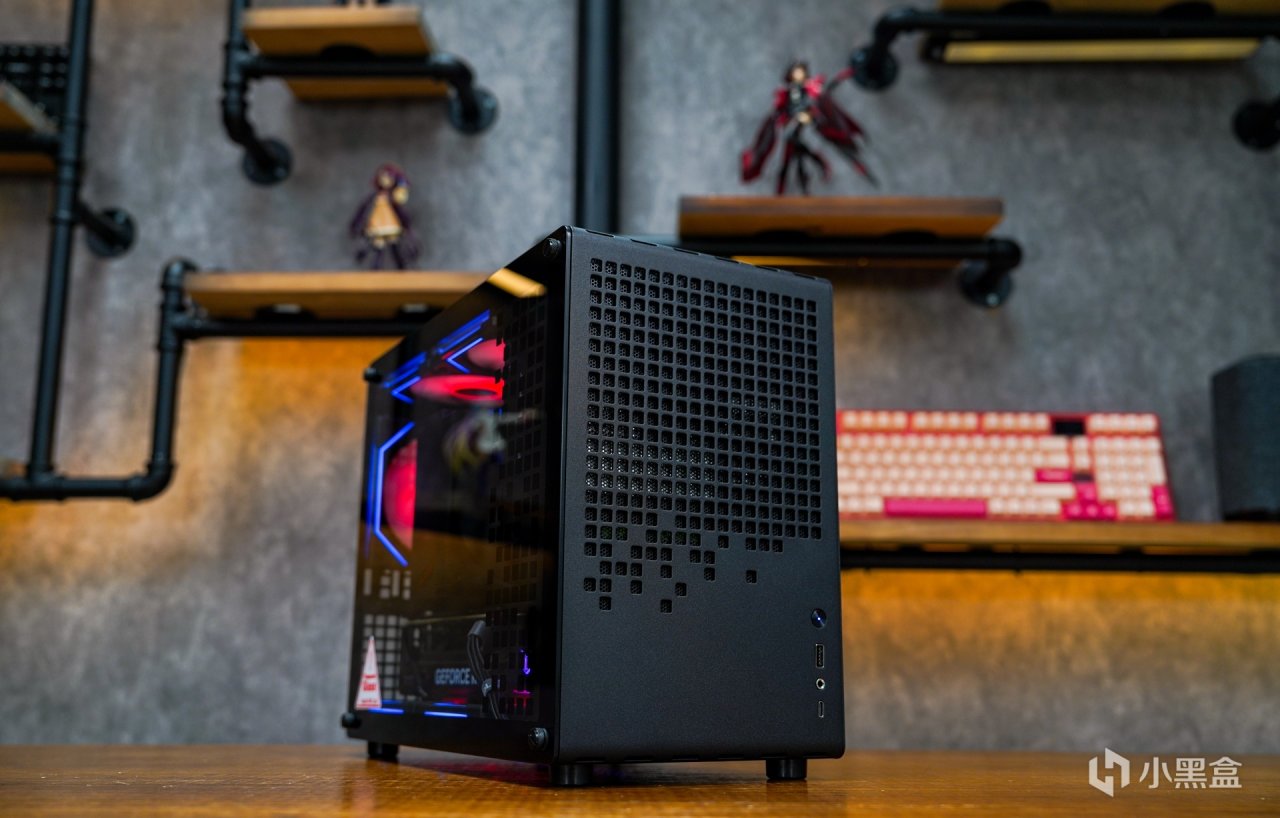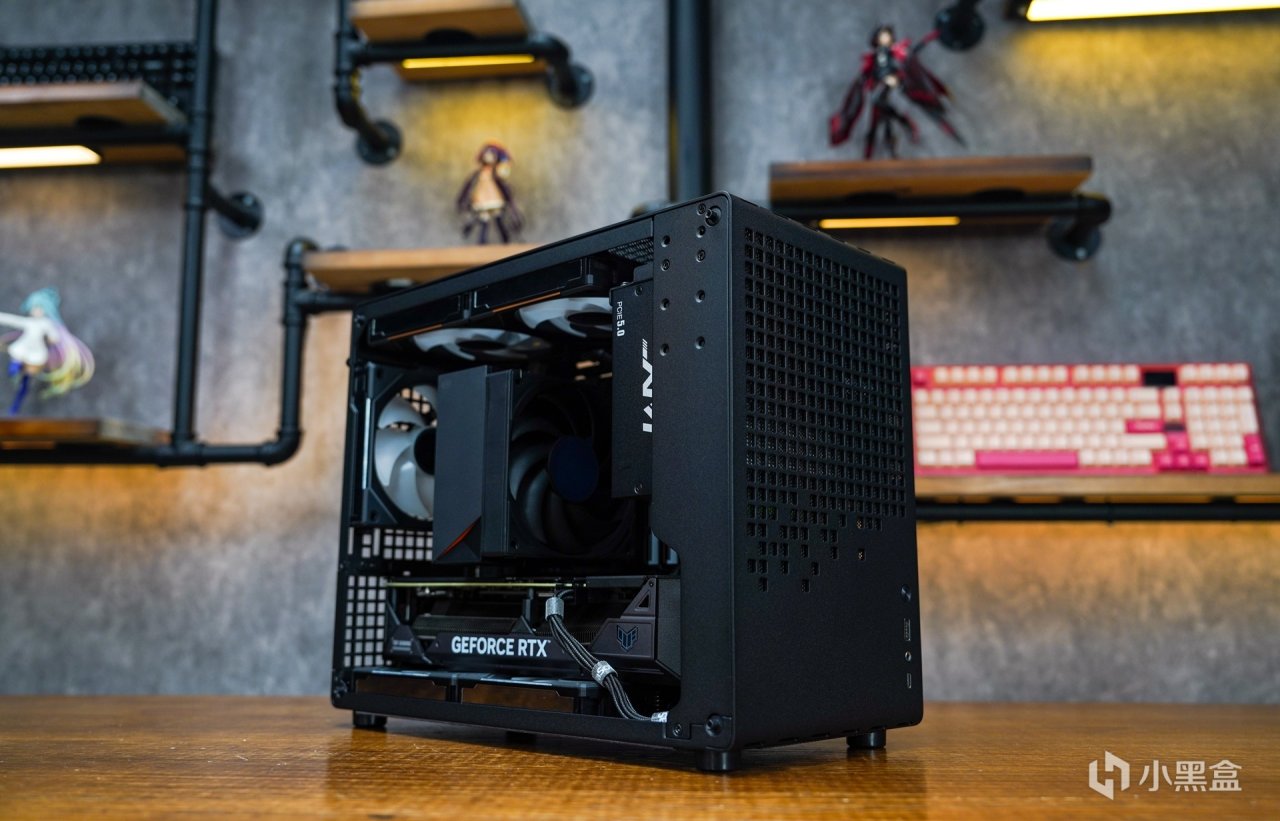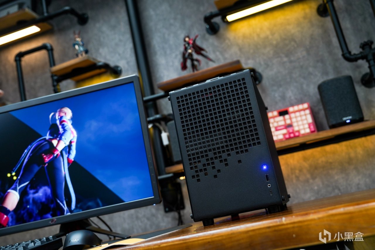 再結合硬件的安裝後的效果,可以看到作爲一款主打緊湊型的20L體積的小型化機箱,既有便於搬動的提手設計,在受衆面上M-ATX主機無疑是受衆更廣泛,也是普羅大衆玩家選擇最多的主機之一,麻雀雖小但是五臟具全。