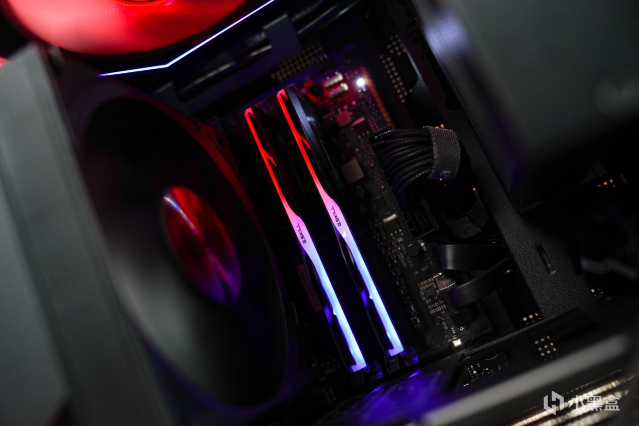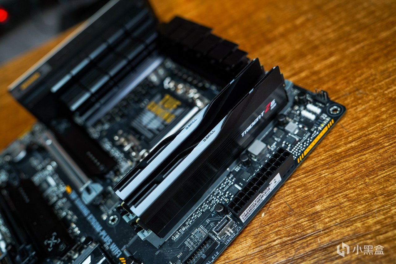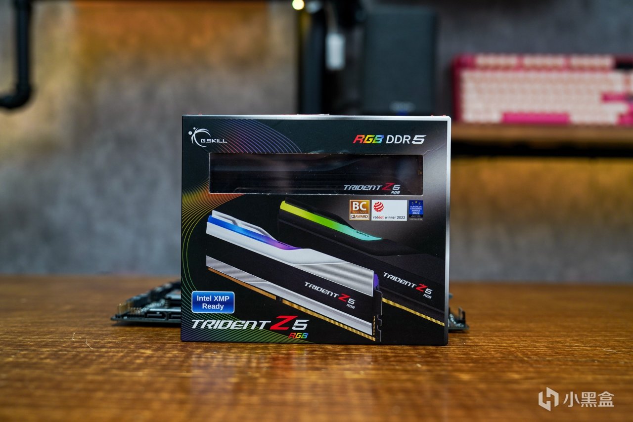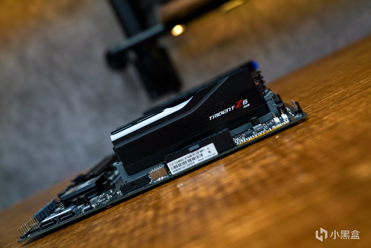 內存方面,則採用芝奇Trident Z5 DDR5 6400 CL32 16*2 32G黯霧黑內存,新版本在外觀造型設計和之前版本相同,也採用全新設計,將超跑元素融入內存散熱片中,內存採用的也是主流的海力士A-DIE顆粒,時序CL32-39-39-39-102。