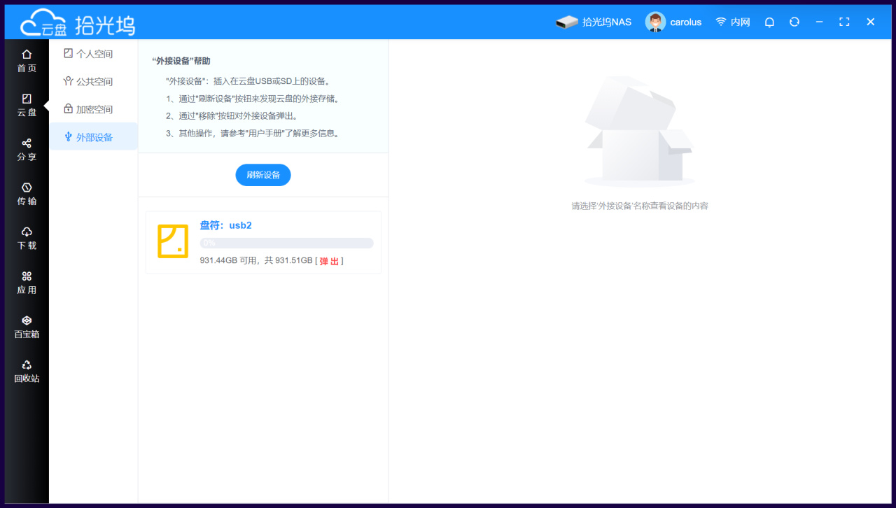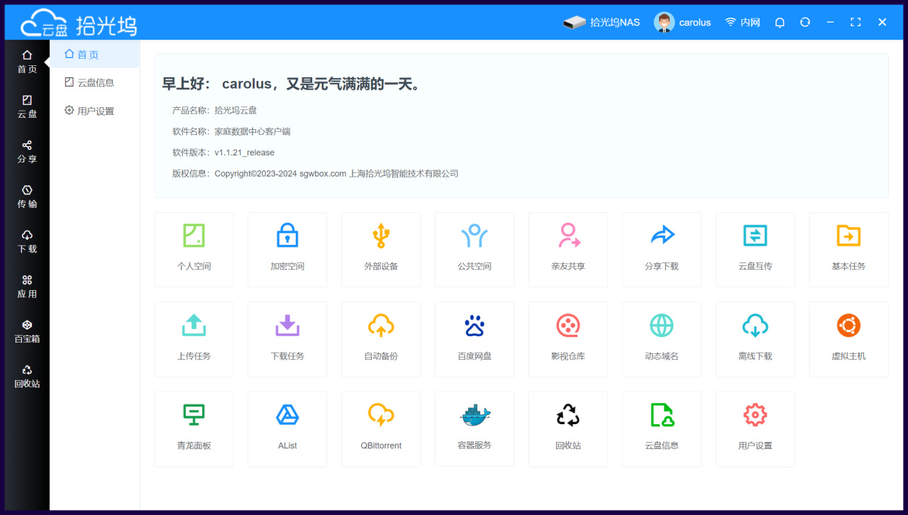 目前在主页面我们可以看到拾光坞N3支持多用户登录,拥有个人空间与公共空间,这点隐私性做得比较好,而且也支持加密空间。