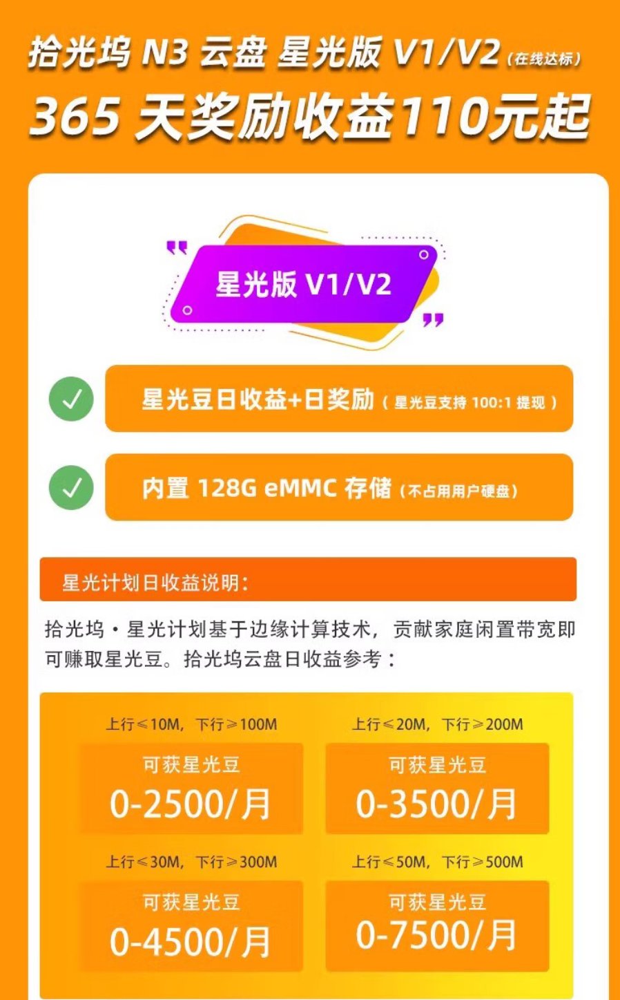 拾光坞N3有一个星光计划,可以用来赚钱。