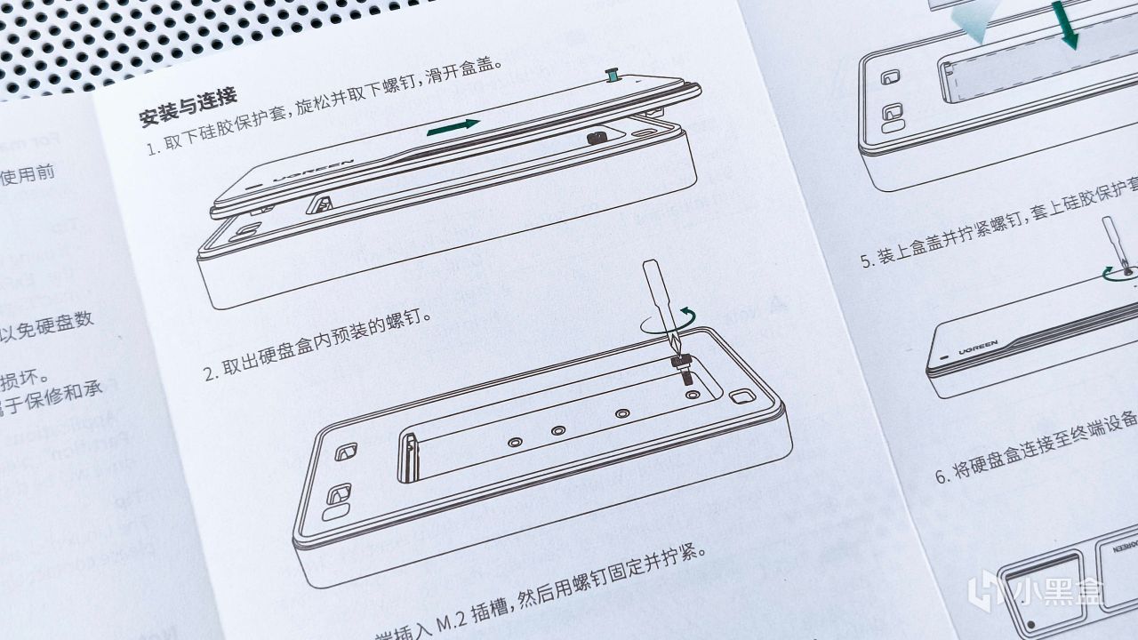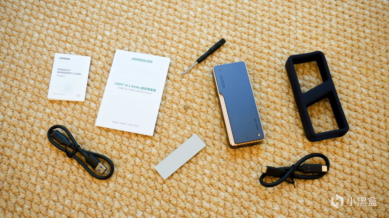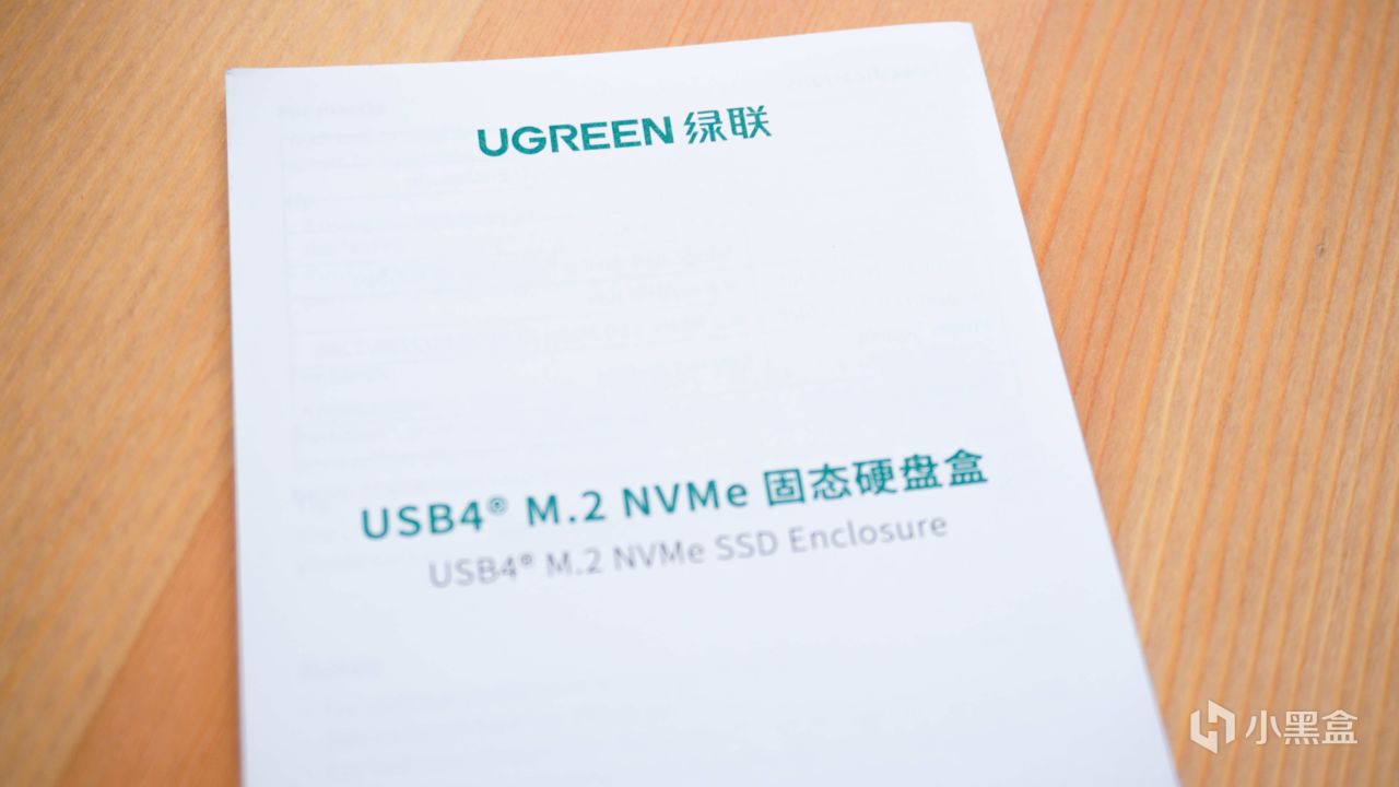 可以看到包装盒右下角是有40Gbps高速传输的金色字样,这哥移动固态硬盘盒的全称:USB4 M.2 NVMe固态硬盘盒。