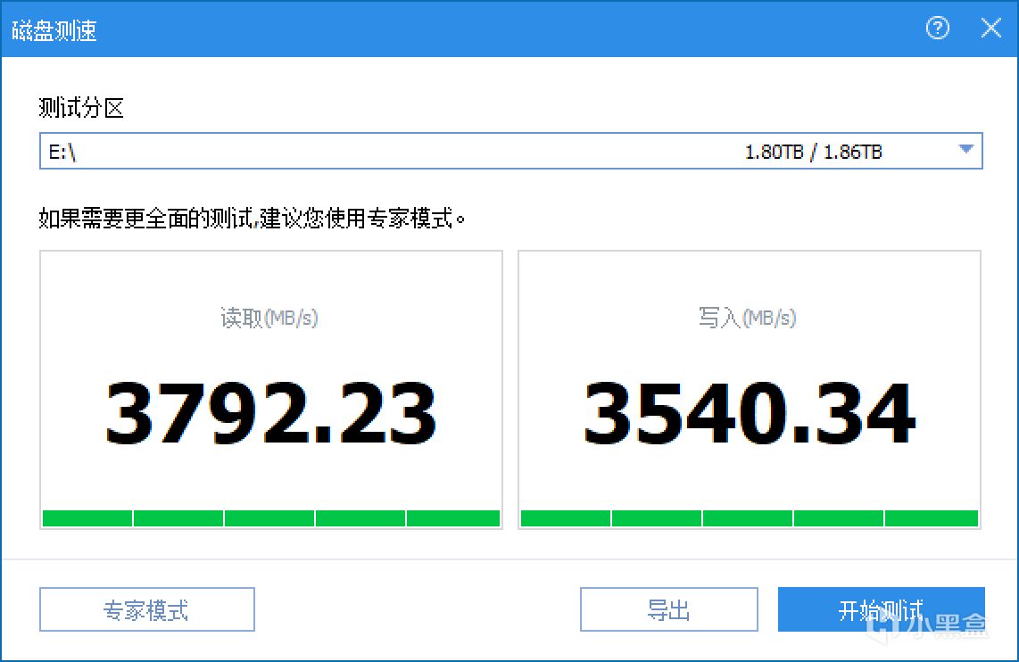 用傲梅分区助手的磁盘测速,可以看到读取速度:3792.23 MB/s,写入速度:3540.34 MB/s。
