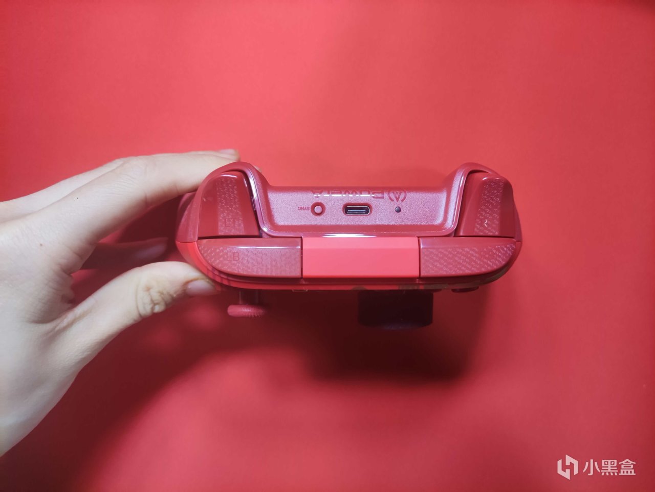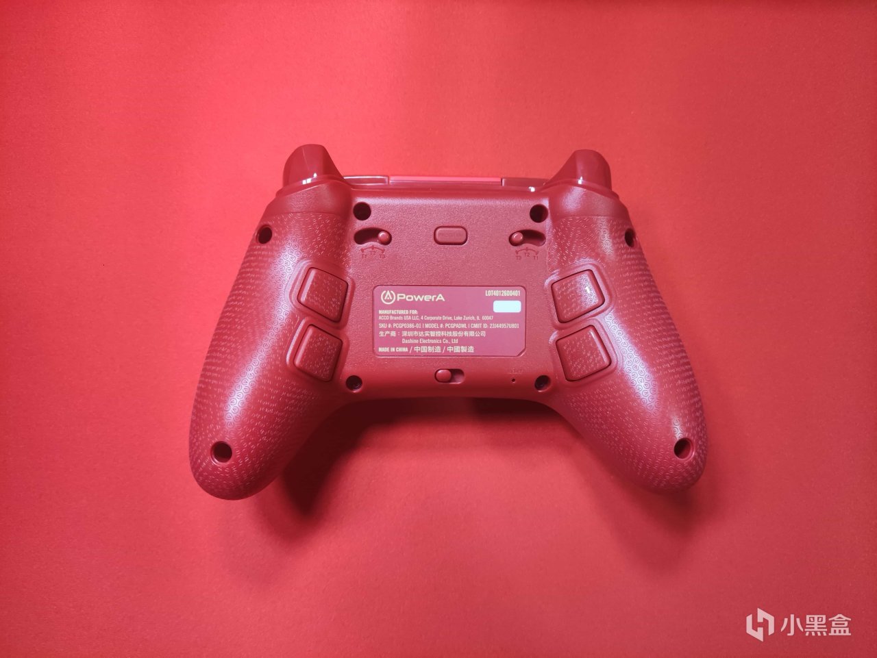 手柄的正面基本上相较于传统的xbox手柄没有太大的变化,只不过是将xbox按键换为了powerA标志的按键。但是这个正面的金龙图案确实十分的炫酷,配合上这个稍微淡一点的红色长辈们见了也得夸一声喜庆。