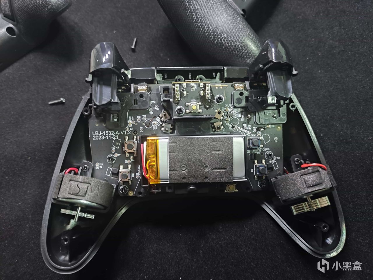 安装回去的时候要注意,扳机的下方是有一个橡胶的小套套,需要安装好再将PCB板装回,同时十字键部分,需要按照顺序摆好两个部件,如果错了会有松动,别问我怎么知道的。