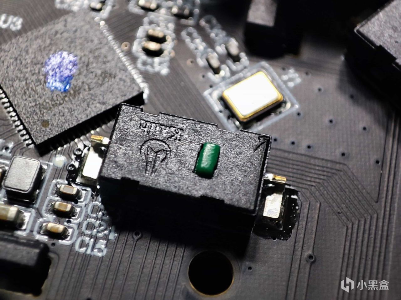 拆开之后就能看到正面的可升降摇杆和微动,个人比较意外的这个微动居然用的凯华的,虽然大部分情况这个微动是用在鼠标侧键上的,其触发方式和手柄的微动略有不同,但是价位是要略高于手柄的微动的。