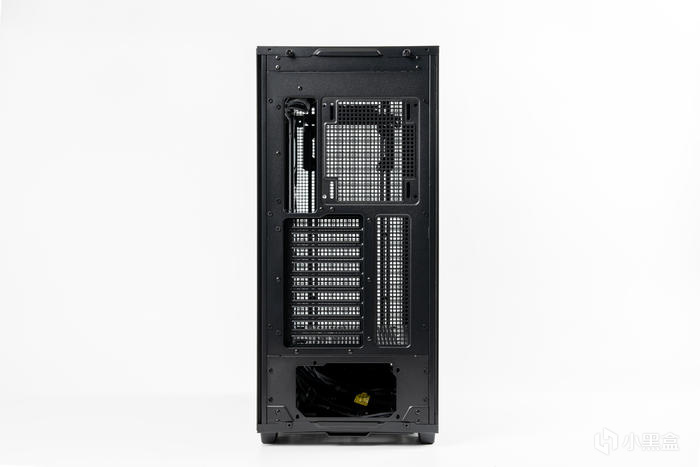 机箱尾部标准的ATX布局,不过顶部一条挡板,底部一片ATX电源挡板和中间的主板挡板都是可拆卸的设计,可根据说明书直接拆卸即可改变布局