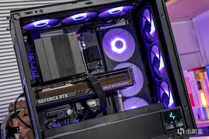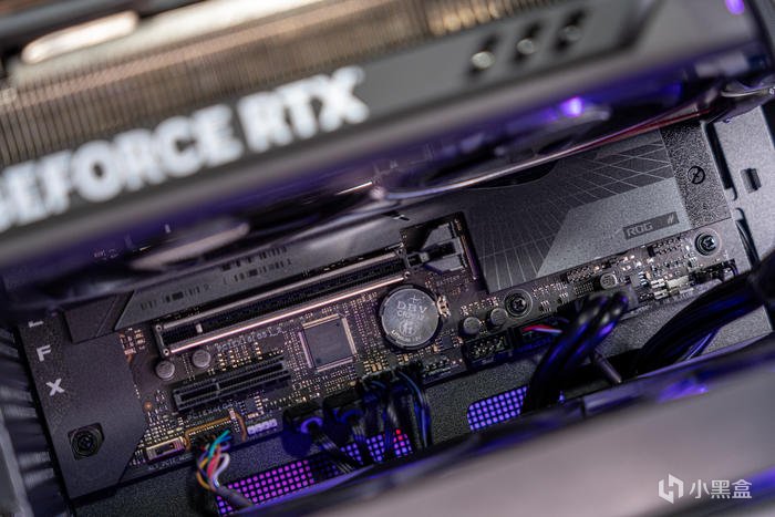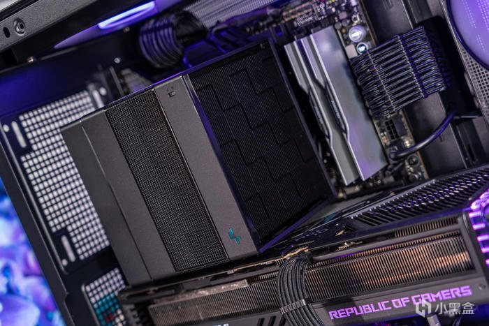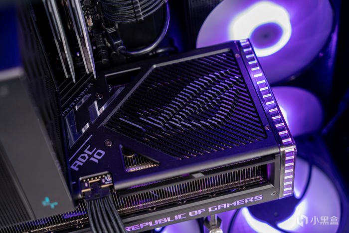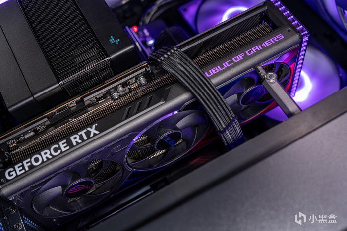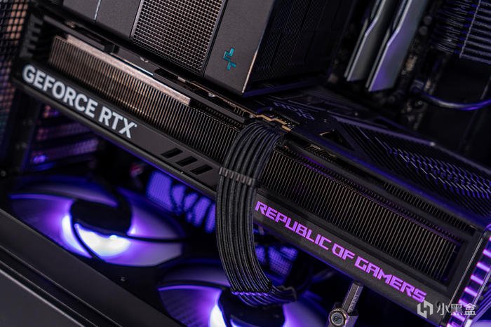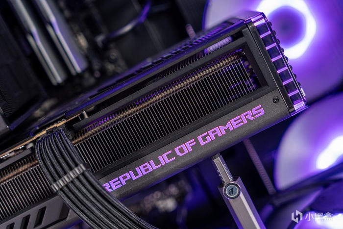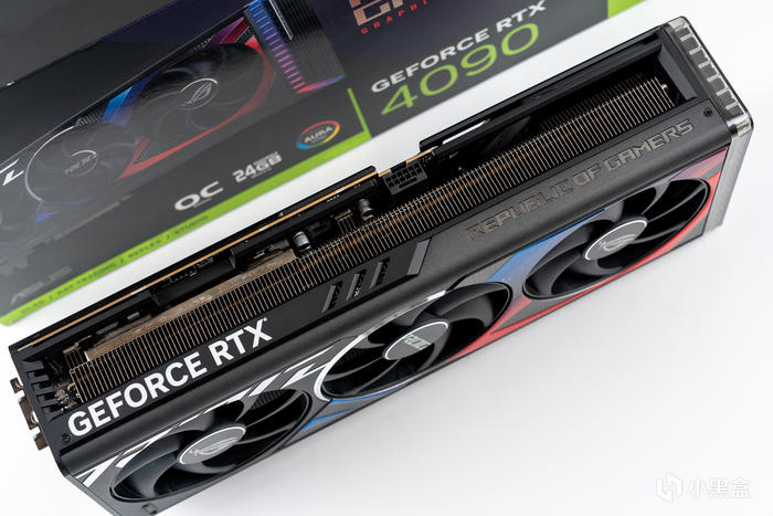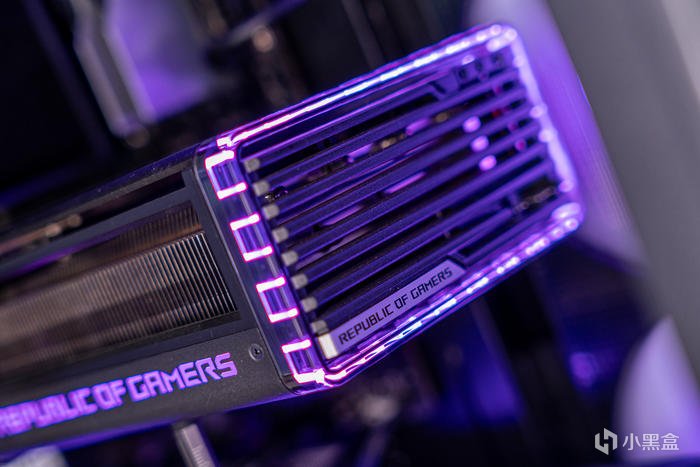显卡顶部带ARGB灯效的“REPUBLIC OF GAMERS”