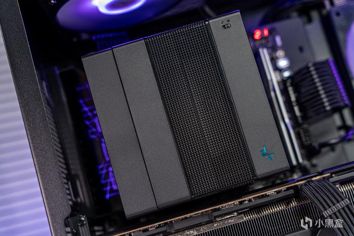 散热使用了九州风神的阿萨辛4风冷散热器,7热管双塔双扇设计,具有双向恒定热平衡热管与280W解热能力,两把风扇都使用了三相六级PWM电机和FDB液态轴承