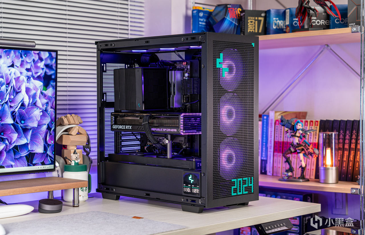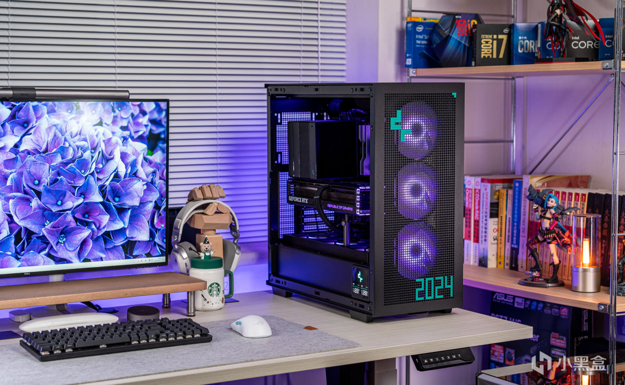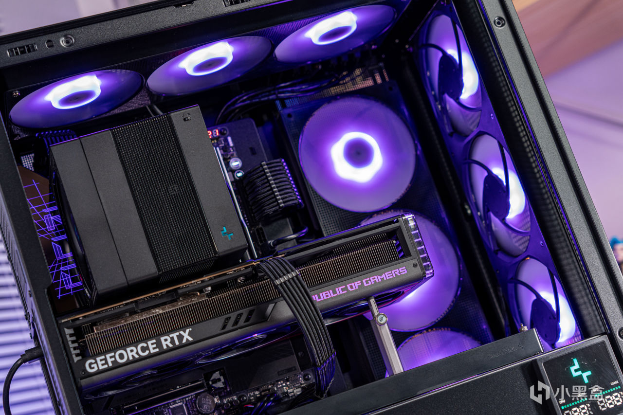 配置方面,使用了14代i7-14700K + ROG MAXIMUS Z790 DARK HERO,这款主板在保持20+1的90A供电规模基础上,舍弃了不方便的M.2扩展卡使得主板直接集成5条M.2,另外还加入了WIFI7的新无线平台,同时内存也升级至最高DDR5 8000频率和192GB大容量的支持,更有DIMM FLEX智能温控优化内存功能的加入。显卡则是旗舰级的玩家国度猛禽ROG STRIX 4090 O24G GAMING,24+4相(核心+显存)(70A)的旗舰供电规模和600W级别超级猛禽散热器让AD102-300发挥到极致。散热器是阿萨辛4,双向恒定热平衡热管的7热管与双塔双扇设计,两把风扇都使用了三相六级PWM电机和FDB液态轴承,配合绝美的外形与280W解热能力,压制14700K也不在话下。内存使用了光威新款海力士M-die颗粒CL32时序的DDR5 6400 48GB(2x24GB)马甲套装,固态硬盘是阿斯加特的采用INNOGRIT英韧科技IG5220BAA和3D NAND颗粒的AN4 Lite 2TB SSD固态硬盘。最后电源时九州风神最新双白金认证的PX1000P全模组ATX3.0电源,它采用半数字交互PFC+主流全桥LLC谐振+DC-DC稳定架构和12年质保。