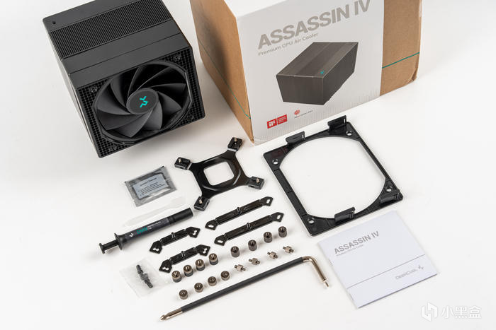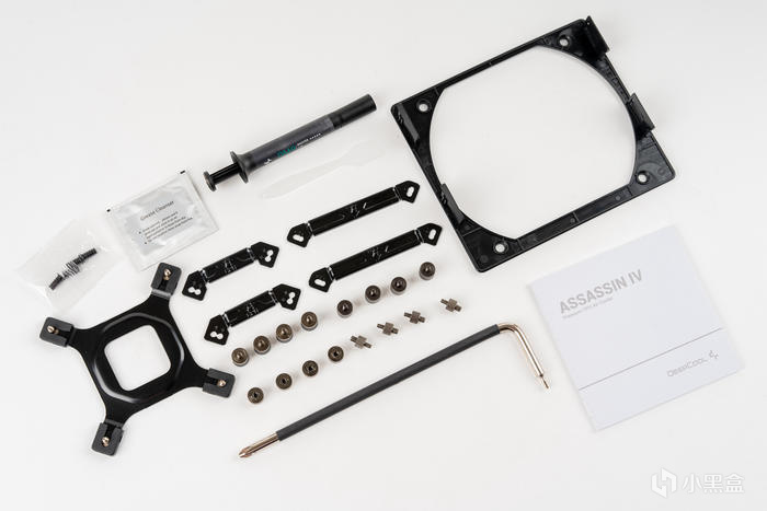 散热器的附件,除了标配intel LGA20XX/1700/1200/115X和AMD AM4/AM5扣具外,还附赠有第三风扇扣具、高品质螺丝刀和九州风神DM9大师级导热硅脂