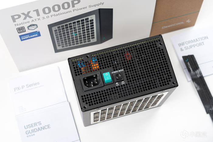 这款PX1000P 是九州风神新出的白金牌ATX3.0电源 ,采用半数字交互PFC+主流全桥LLC谐振+DC-DC稳定架构,且具有双主电容、全日系耐温105°电容、PCIE5.0原生供电、一键智慧启停的FDB风扇、五路PCI-E供电、12年质保等众多新功能和稳定的参数,并且获得了80PLUS金牌与cybenetics 白金的双认证!