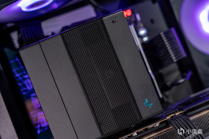 而散热器的中置140mm风扇通过磁吸顶盖安装在下面,右上角的风扇调速开关可在1700RPM/1350RPM之间两档切换