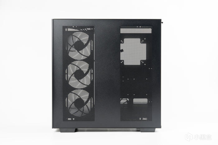前面板一致的设计,而这九州风神的三联一体风扇也是巨无霸的设计