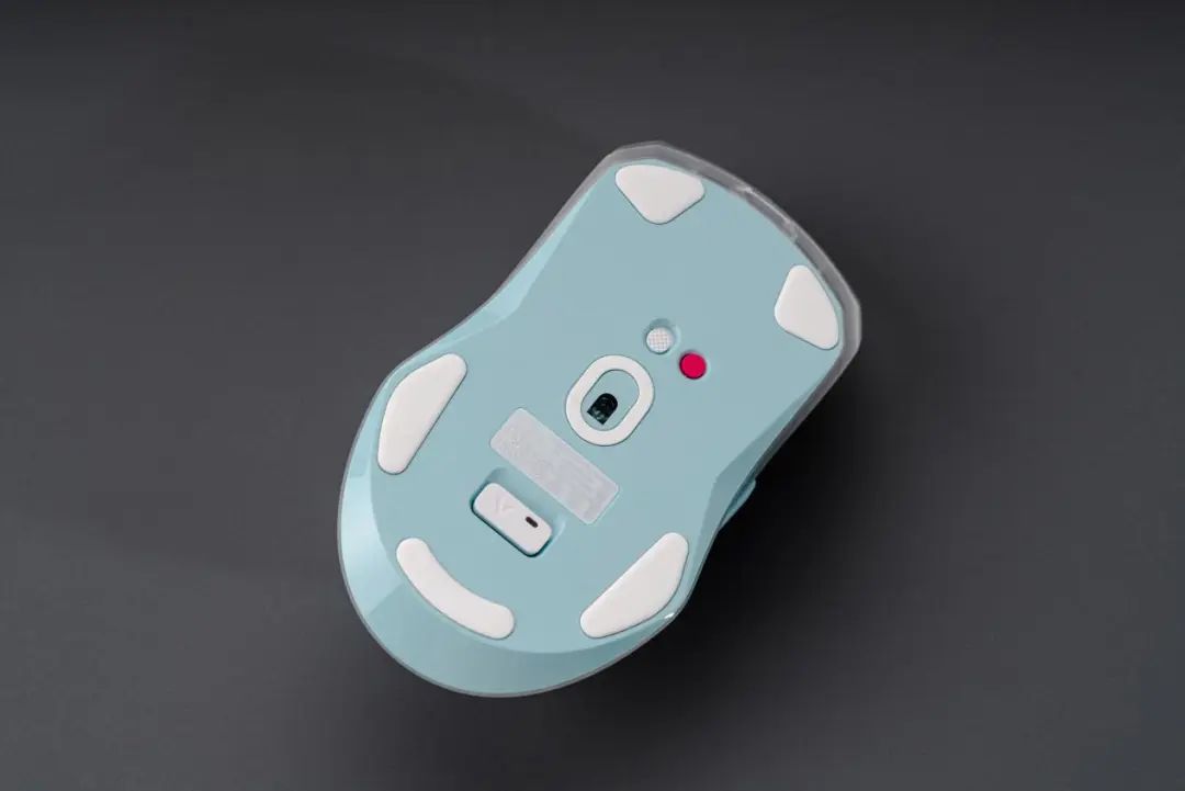 在VT9 Air和VT9 Air Lite底面,设置了电源开关以及2.4GHz无线接收器的收纳仓,便于用户在外出携带的时候能够将接收器妥善收纳,避免遗失。鼠标底面的脚垫都是由PTFE特氟龙材质打造而成,摩擦系数低移动顺畅,又非常的耐磨。