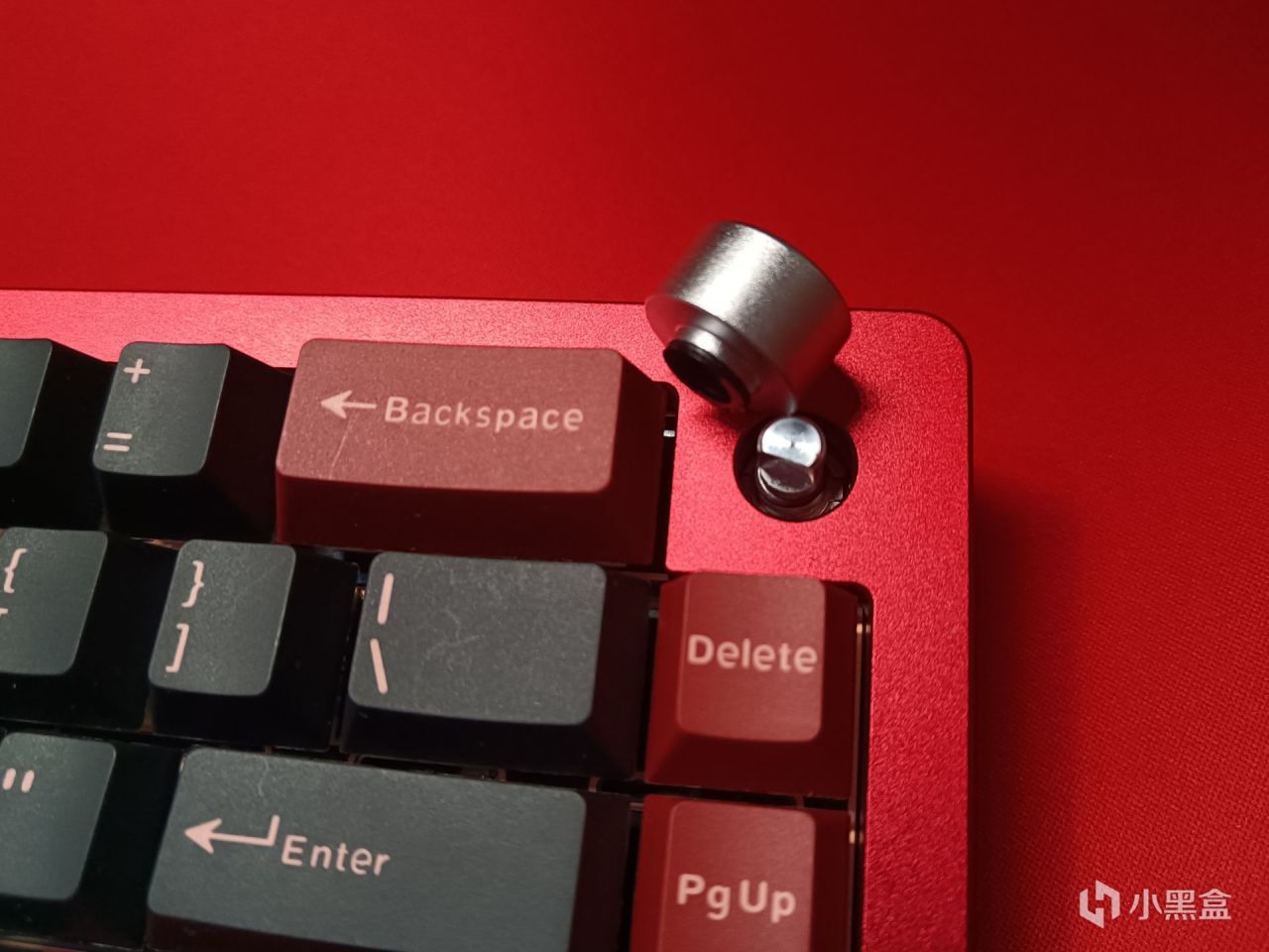 右上角部分是一个多功能旋钮,也是铝合金材质,用以控制音量和灯光效果,质感很不错,使用过程中也不会出现歪斜的情况。