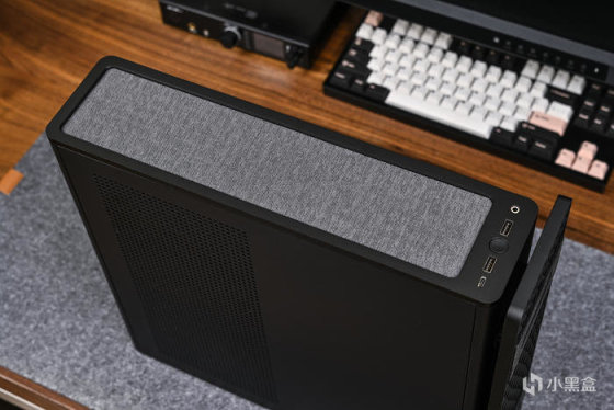 機身採用了金屬材質,多處採用圓形小孔通風散熱,正面板採用了陽極鋁合金邊框+編織布料。內部規格方面支持 ITX/DTX 主板,CPU 散熱限高 70mm,支持安裝 SFX、SFX-L 電源,可最大支持 335mm 長、137mm高、82mm厚的顯卡或者280一體式水冷排提高CPU上限。